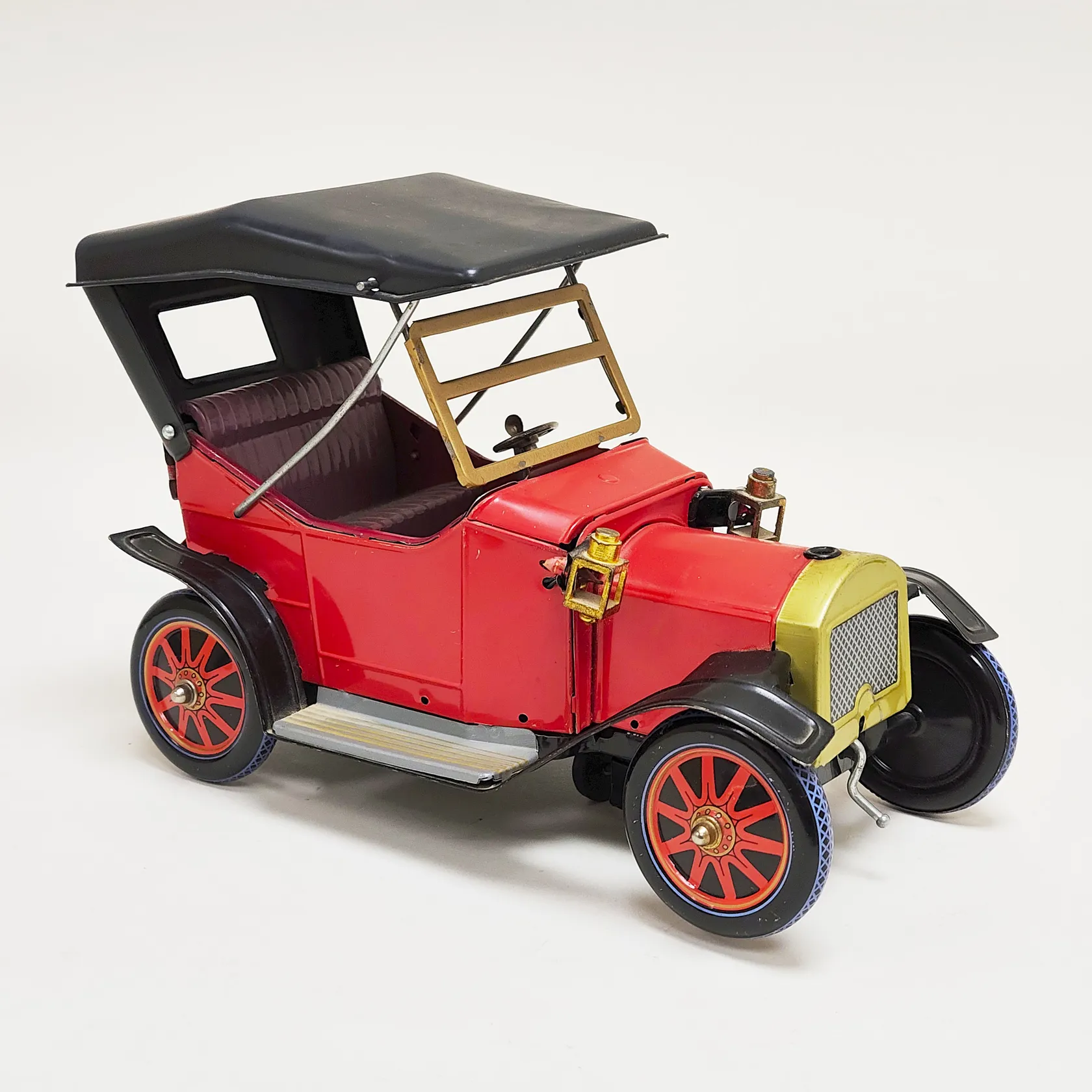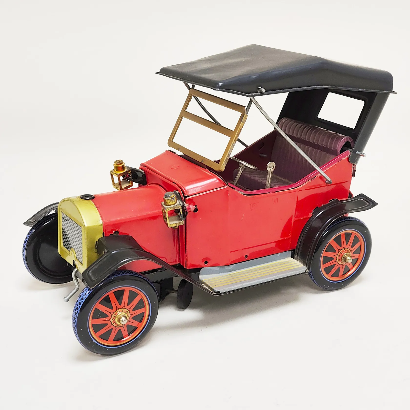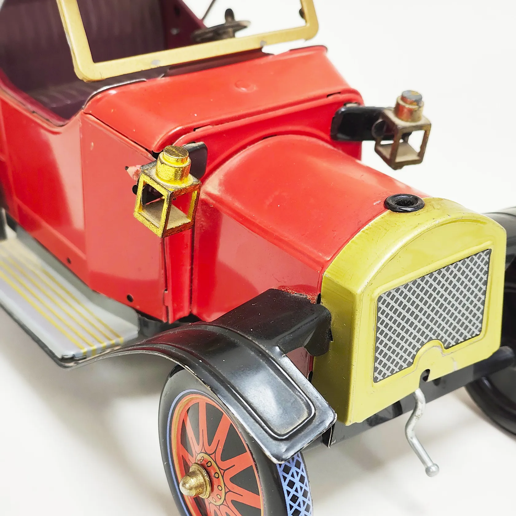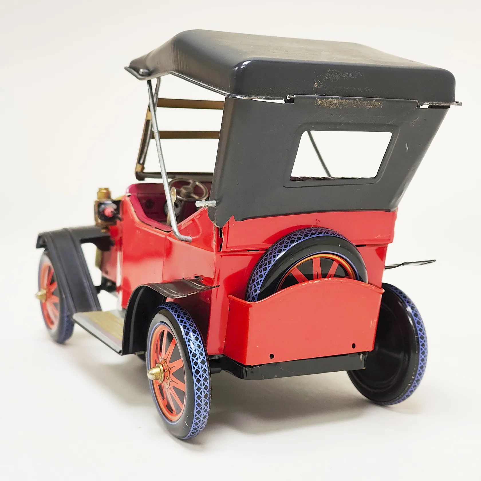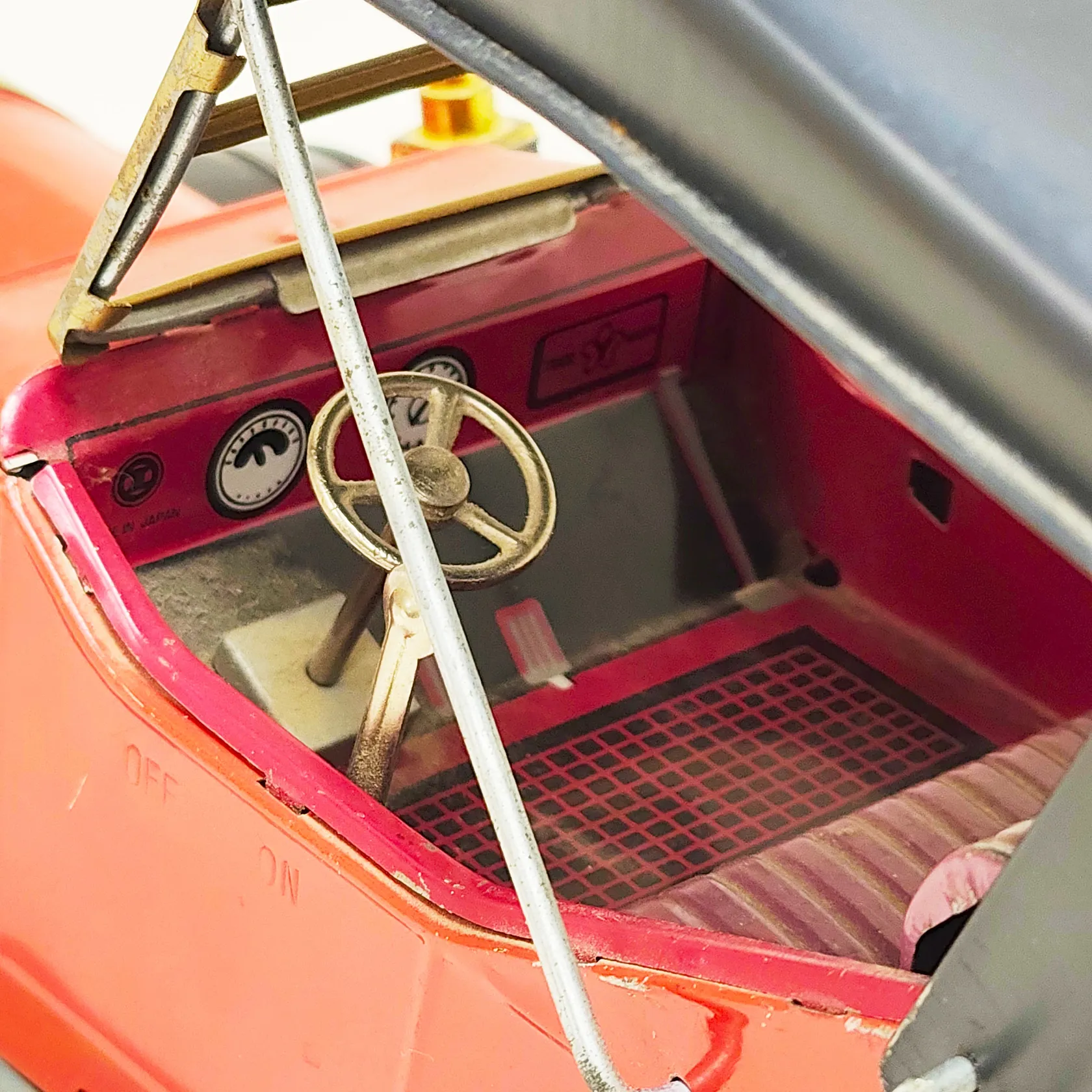 Leksaksbil Yonezawa Mystery Action Smoking Veteran Car, batteridriven, made in Japan, 50-tals repig, skador, lösa delar, metall, inga tillbehör.