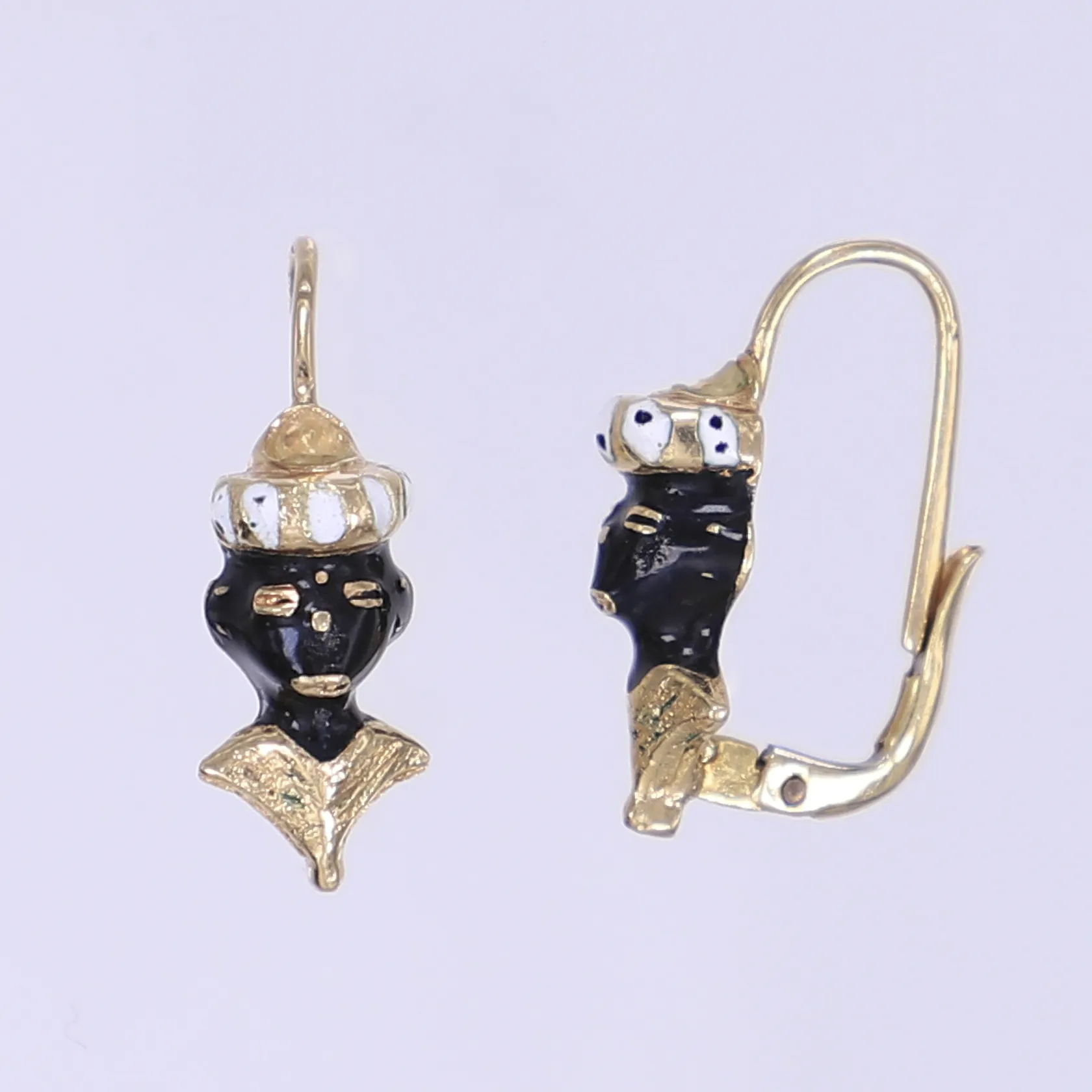 Ett par örhängen med emaljdetaljer, längd 20mm, bredd 8mm, 14K Vikt: 6,7 g.