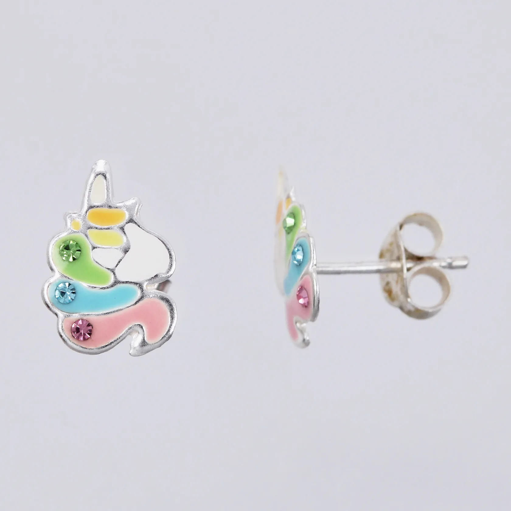 Ett par örhängen enhörningar, längd: ca 1cm, bredd: ca 7mm, 925/1000, silver Vikt: 0,5 g.