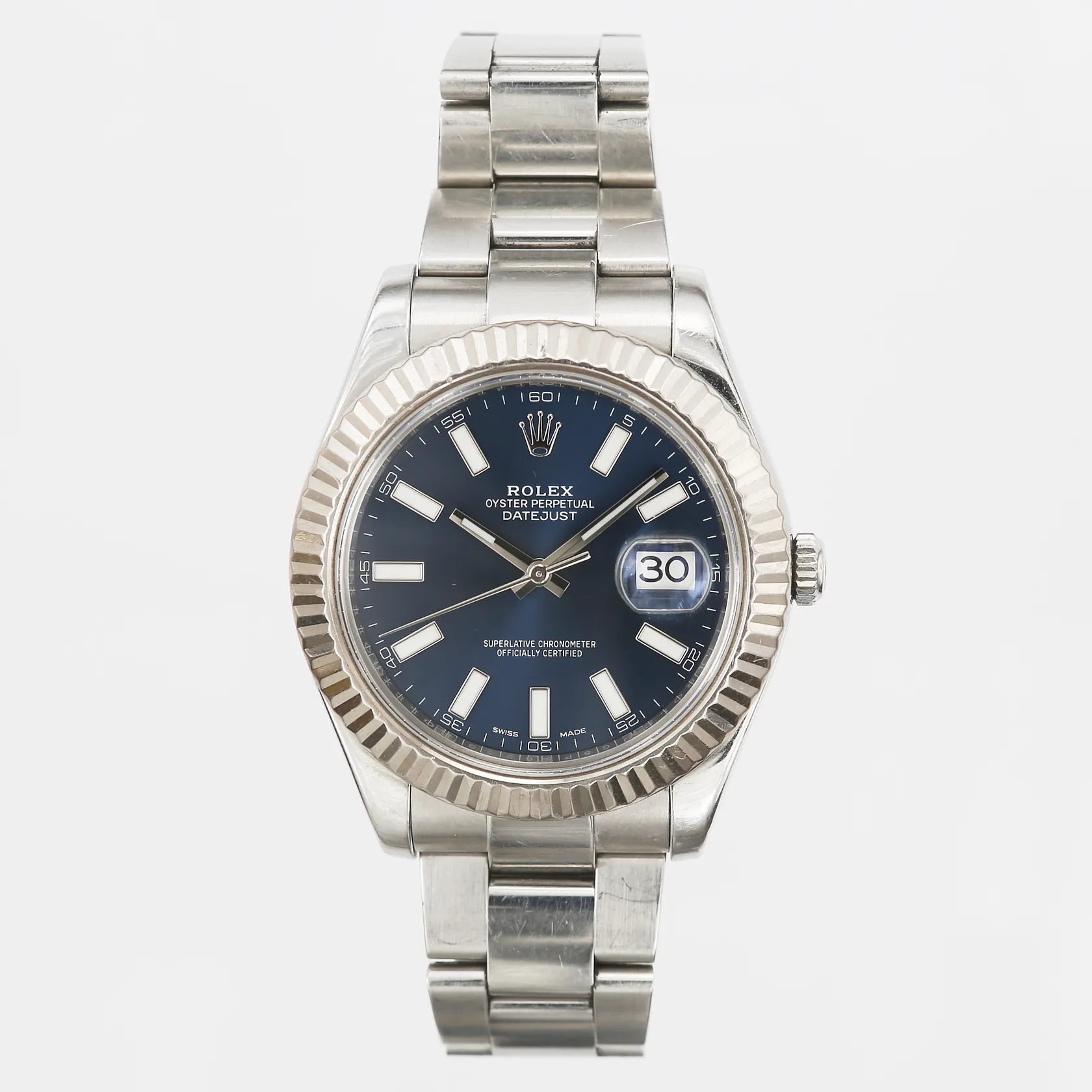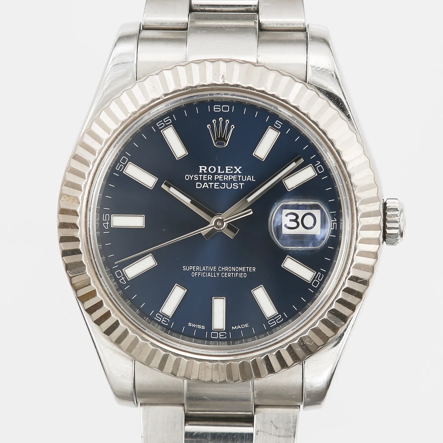 Herrur Rolex Oyster Perpetual Datejust II, stål, automatisk, Ø41mm, ref-nr:116334, serie-nr: G5P86239, kaliber:3136, boett-nr:2410, verk-nr:9HQ2534, blå urtavla, safirglas, datum, 10st oysterlänkar, bruksslitage, inga tillbehör. OBS FINNS FÖR VISNING PÅ PANTBANKEN SKÄRHOLMEN