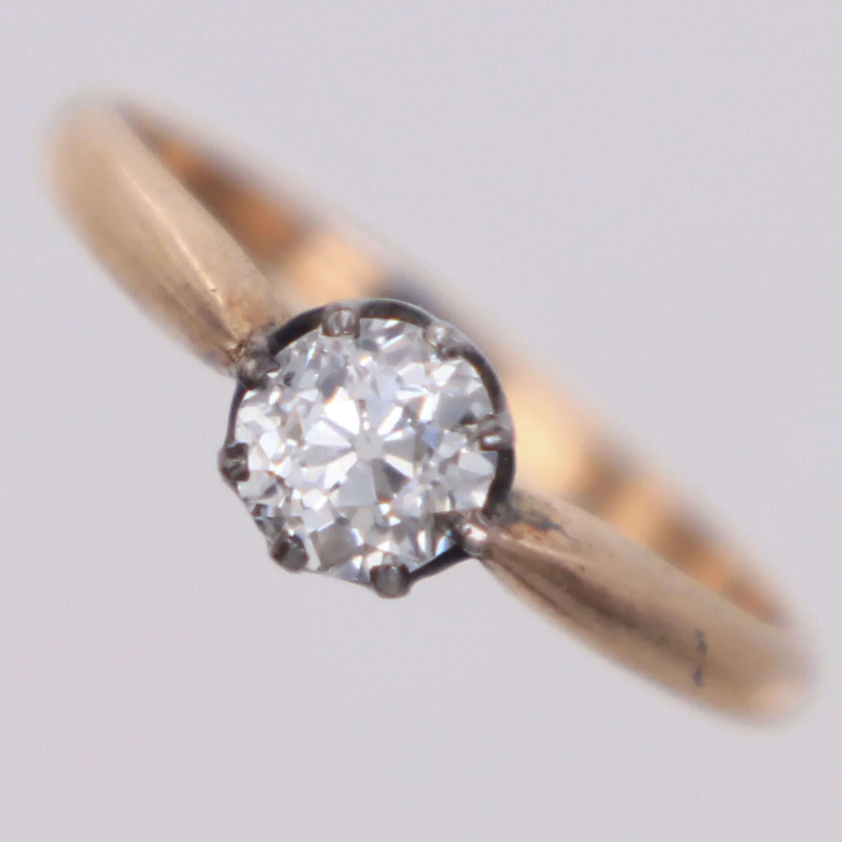 Ring med gammalslipad diamant 1x ca 0,55ct, SI/P, stl 17¼, spår av storleksändring, klor i silver, 14K Vikt: 2,3 g.