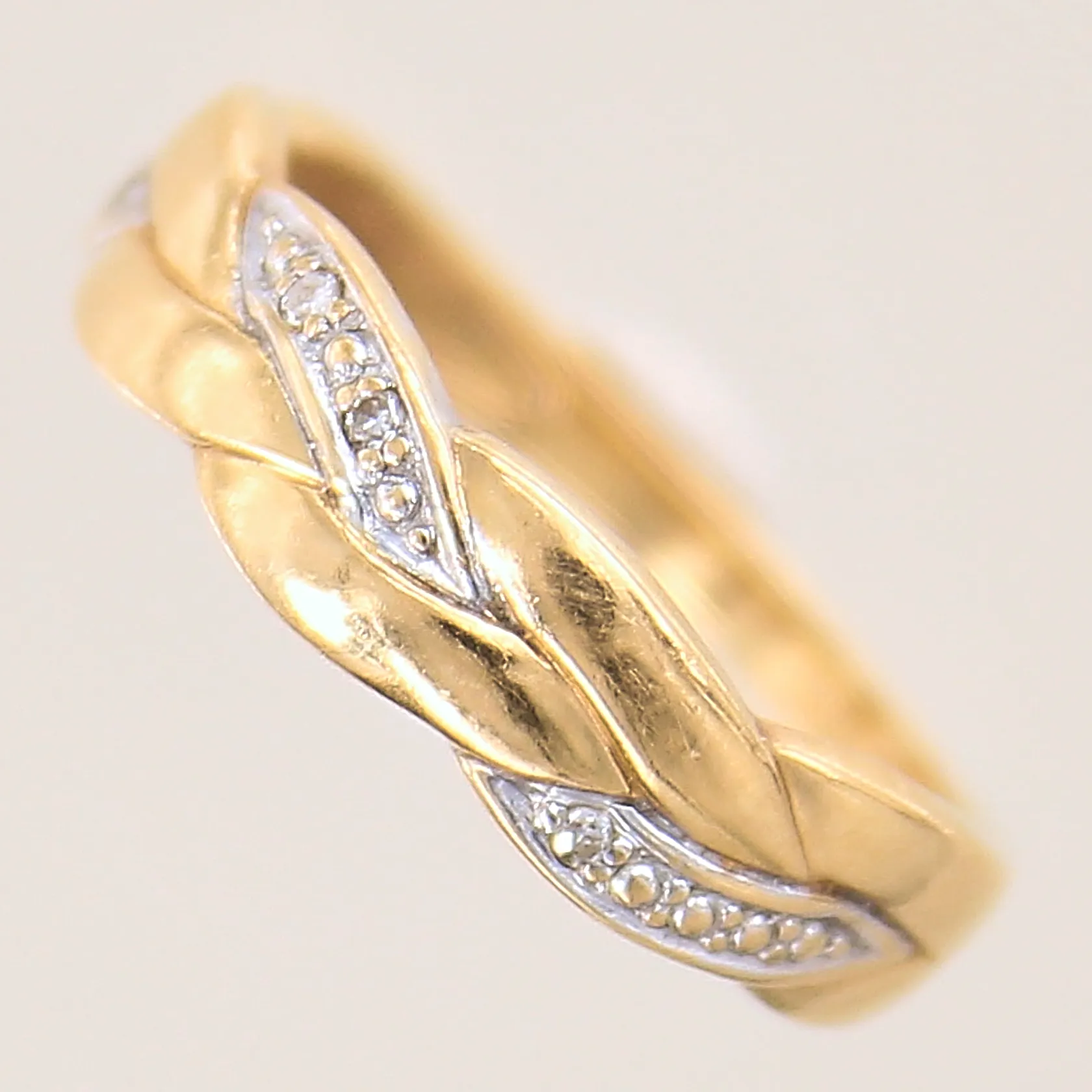 Ring med diamanter 3 x ca 0,005ct, stl 16, bredd 2-5mm, GHA, 18K Vikt: 2,4 g.