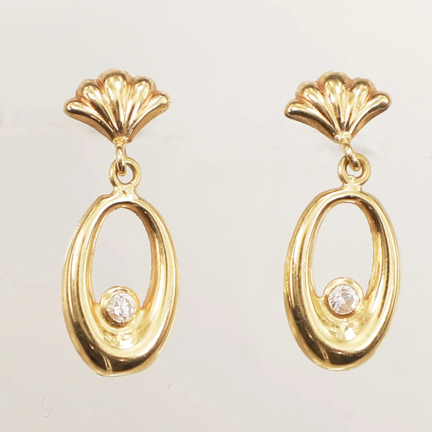Ett par örhängen med vita stenar, längd 20mm, bredd 7,7mm, snurrebussar saknas, 18K Vikt: 0,7 g.