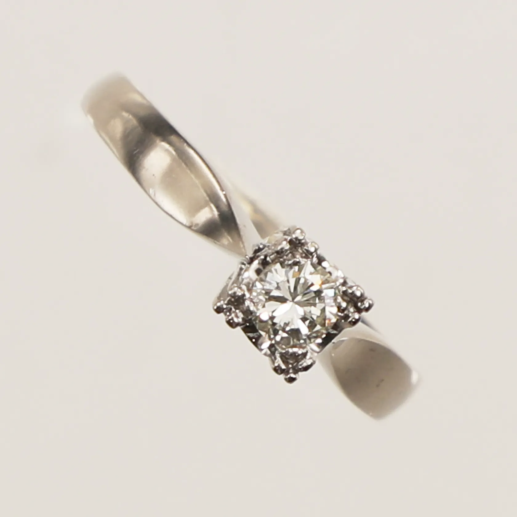 Ring diamant 0,18ct enligt gravyr, stl 15¾, bredd 4,8mm, Ceson Guldvaru Ab, år 1964, vitguld, 18K Vikt: 3,3 g.