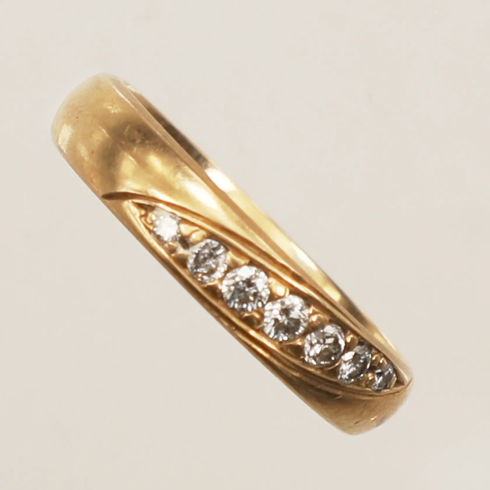 Ring diamanter 7x ca 0,01-0,03ct, stl 16, bredd 3,8mm, gravyr, 18K Vikt: 3,1 g.