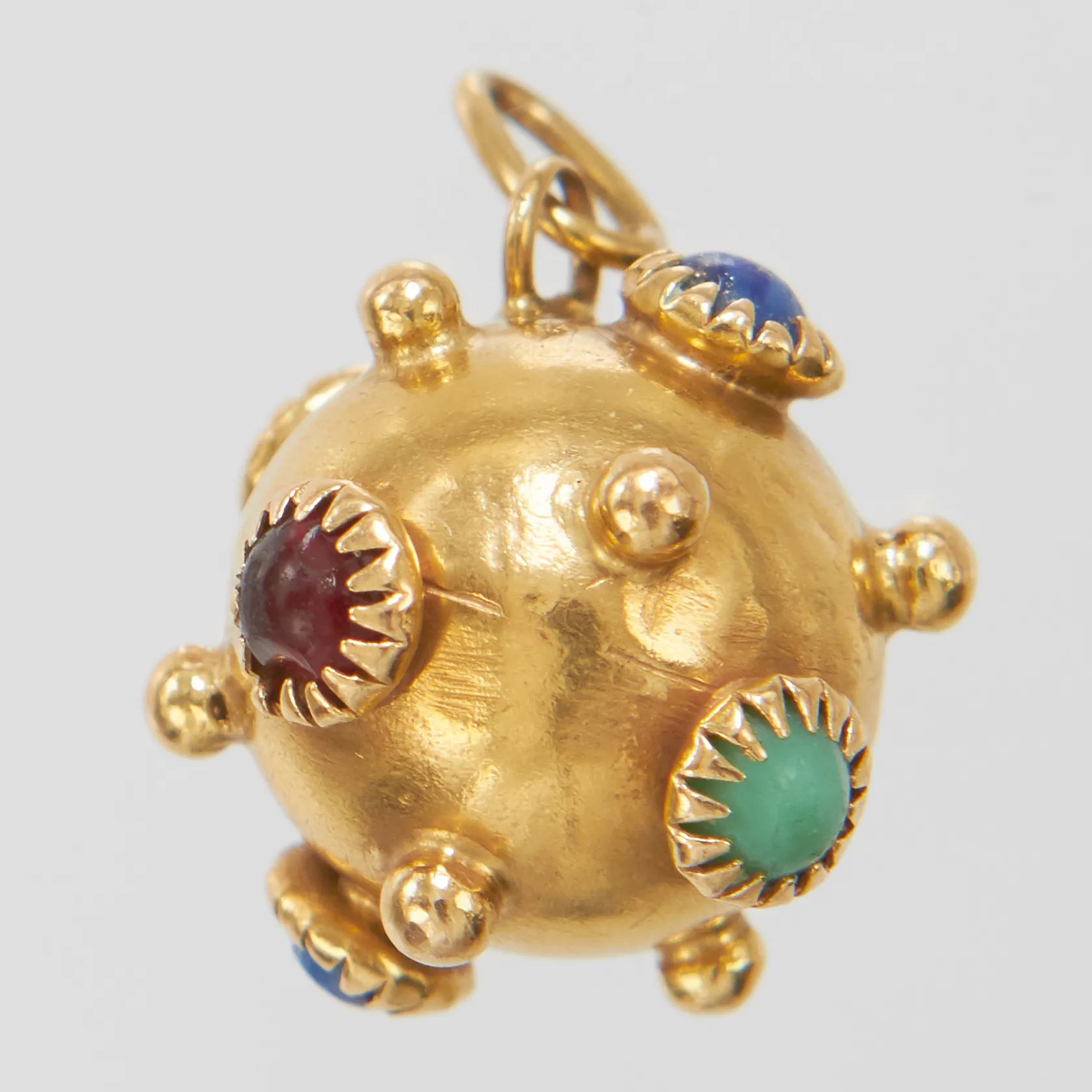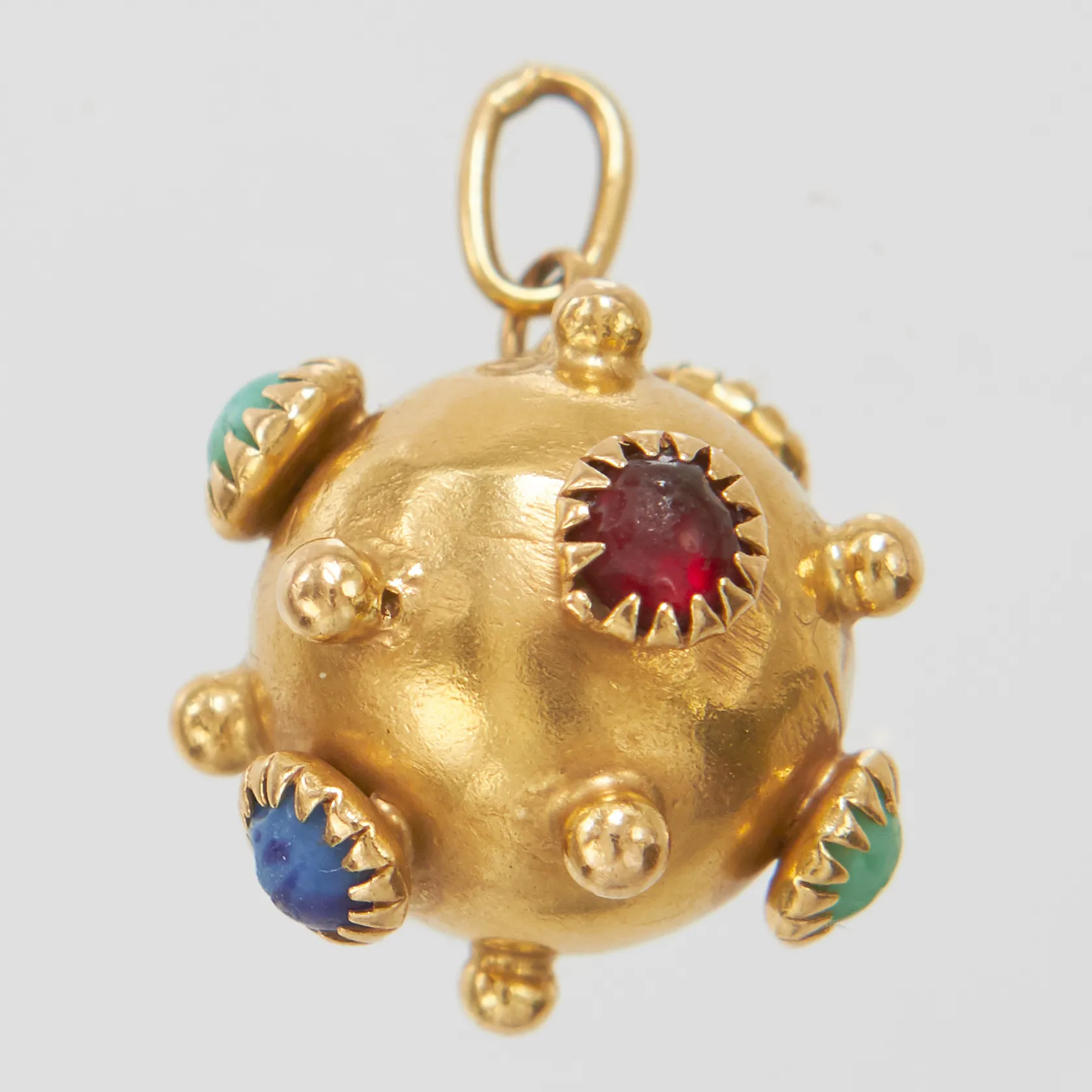 Hänge, färgade stenar, längd ca 21mm inkl ögla, bredd 15mm, 18K, bruttovikt: 3,8g.