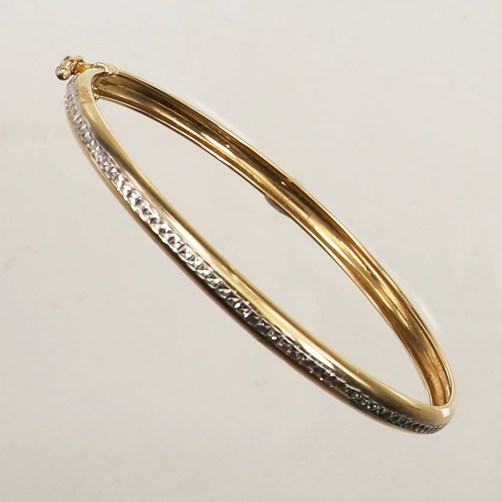 Armring, innermått 18cm, Ø60mm, bredd 4,6mm, tvåfärgad, 18K Vikt: 5,1 g.