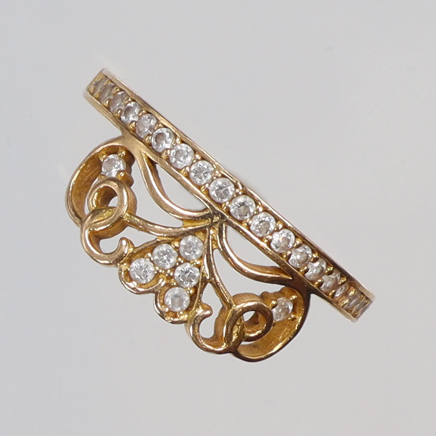 Ring med vita stenar, stl 16¾, bredd 1,5mm - 7mm, 21K Vikt: 2,3 g.