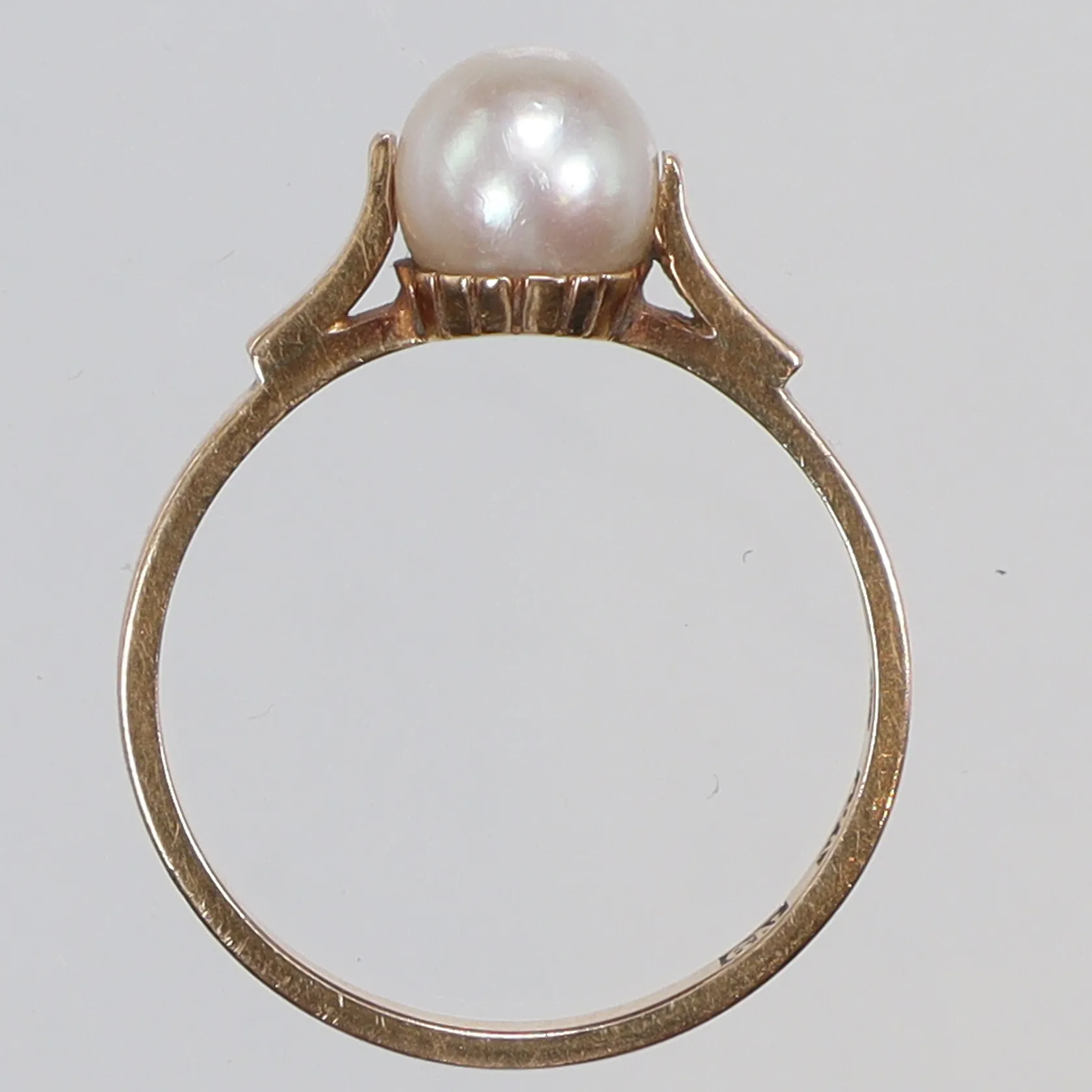 Ring med odlad saltvatten pärla stl 17¾, bredd 1,5-6mm, A&M (Guld & Gravyr Andersson & Magnusson) Göteborg 1963, 18K 2,3g Vikt: 2,3 g.