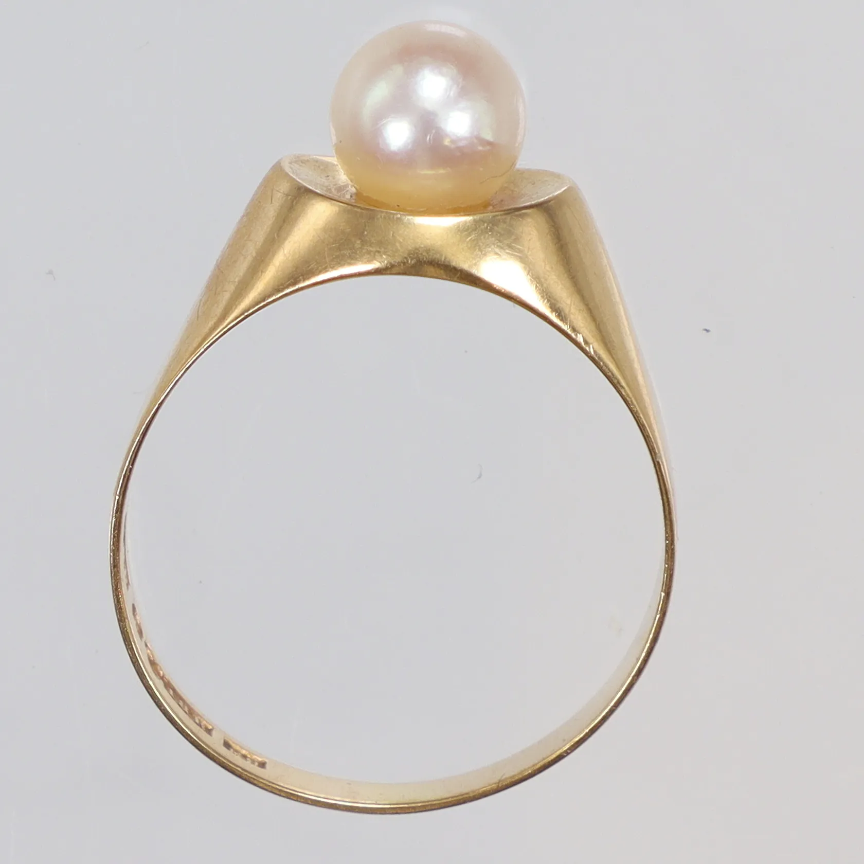 Ring med odlad saltvattenpärla stl 18, bredd 2-8mm, Brofod Aktiebolaget Falköping 1967, 18K Vikt: 2,3 g.