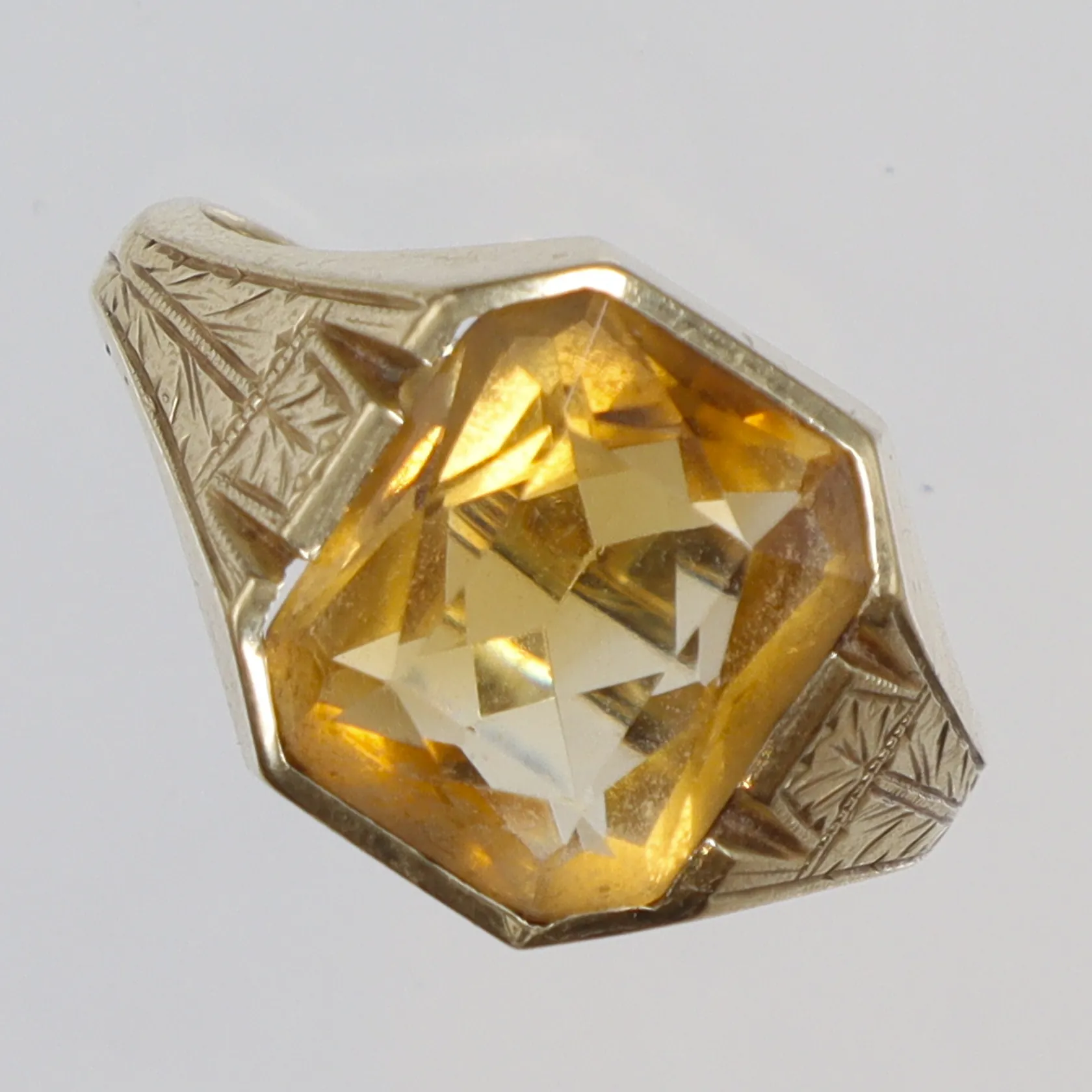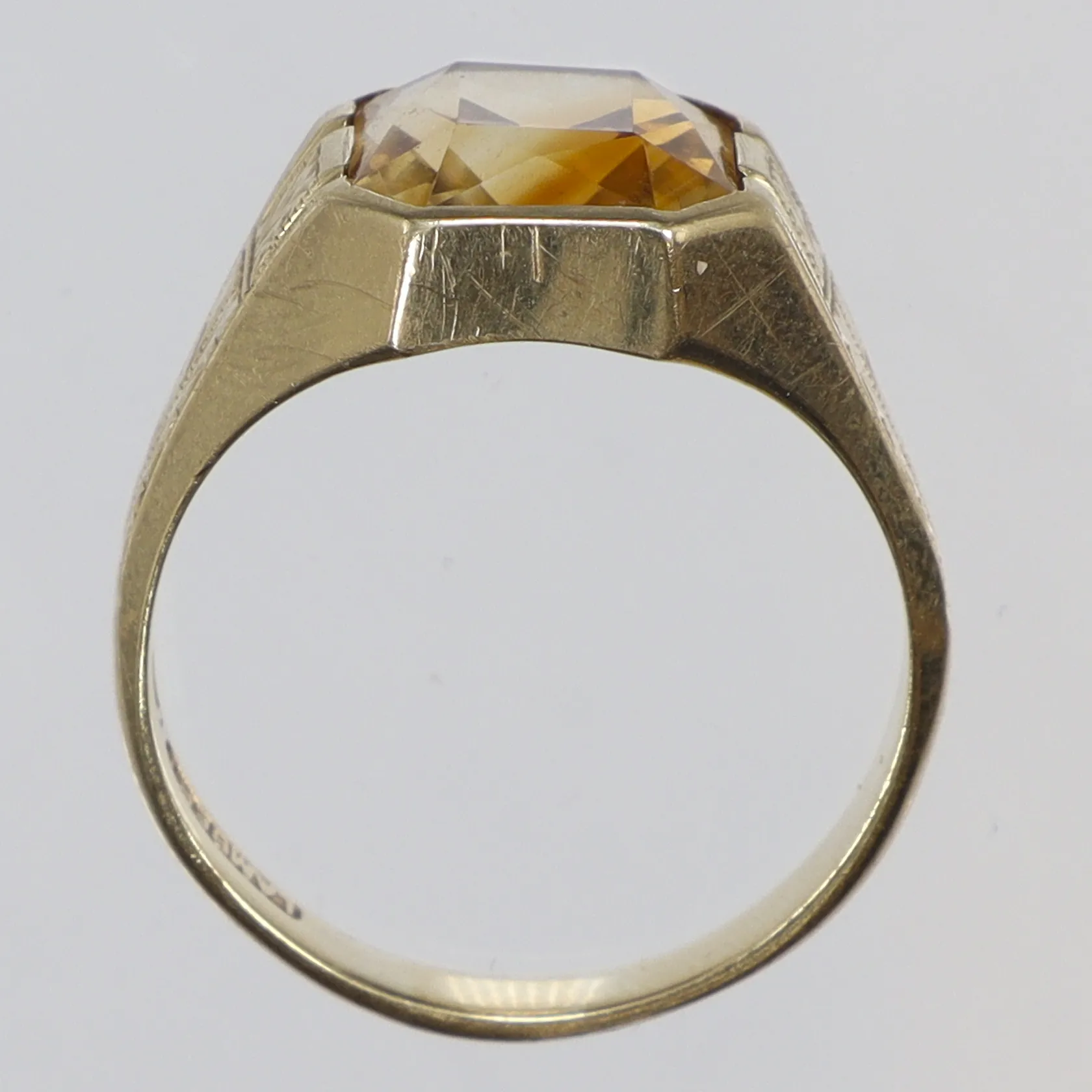 Ring i Art Deco-stil med guld sten och graverad dekor stl 20, bredd 3-14mm, tillv. Lambert troligen New York, 1920/30-tal sten något lös i fattning, 10K Bruttovikt: 5,5g Vikt: 5,5 g.