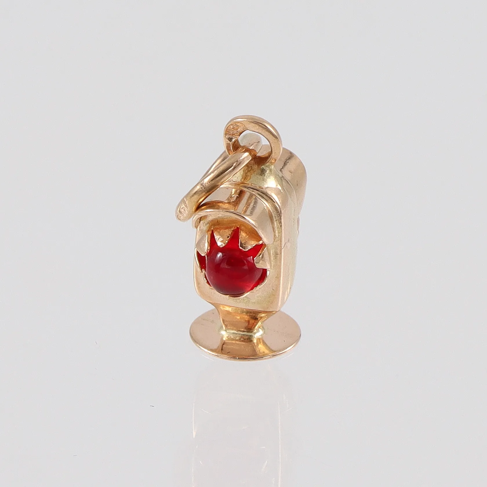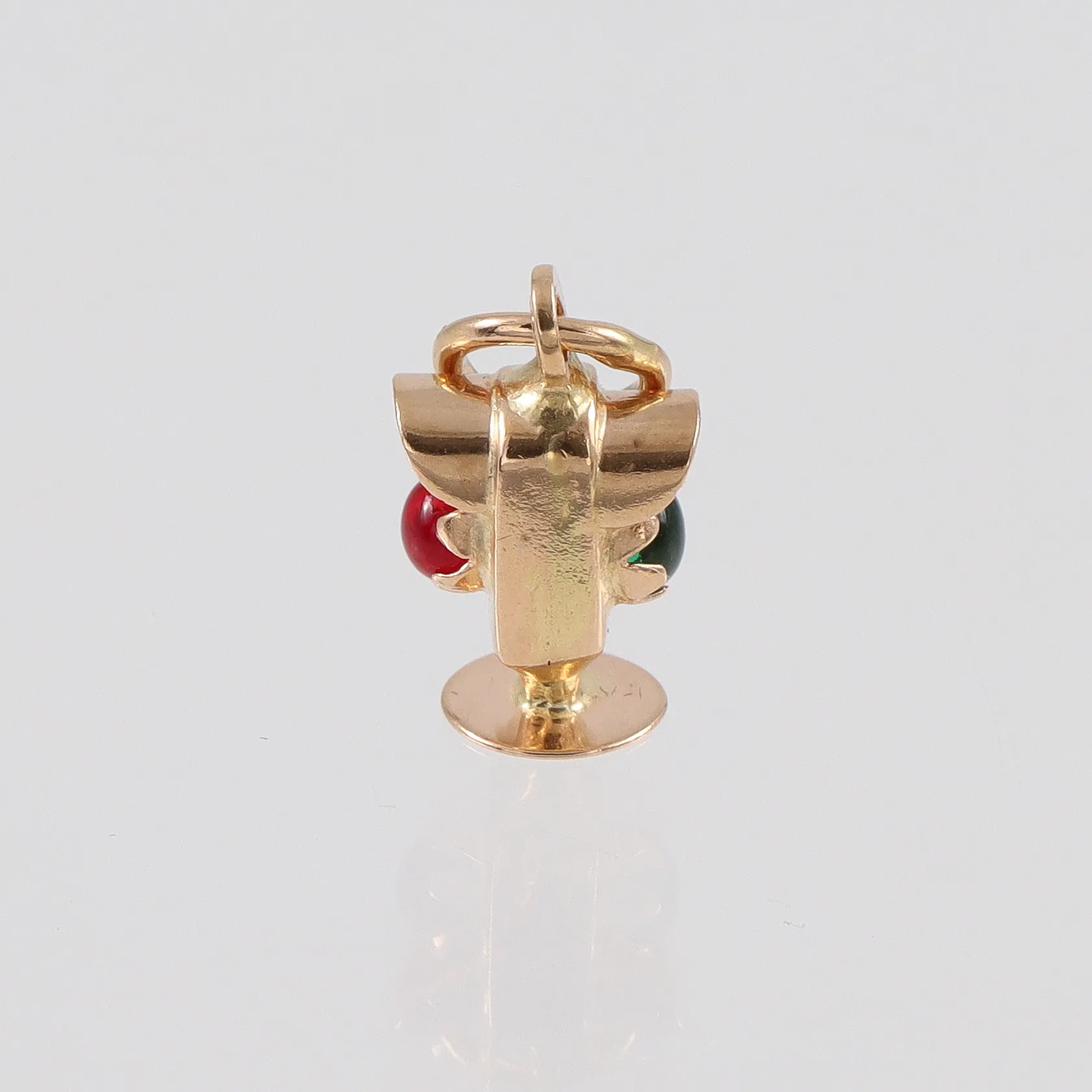 Berlock med grön och röd sten 18k, höjd ca10mm Vikt: 1,1 g.