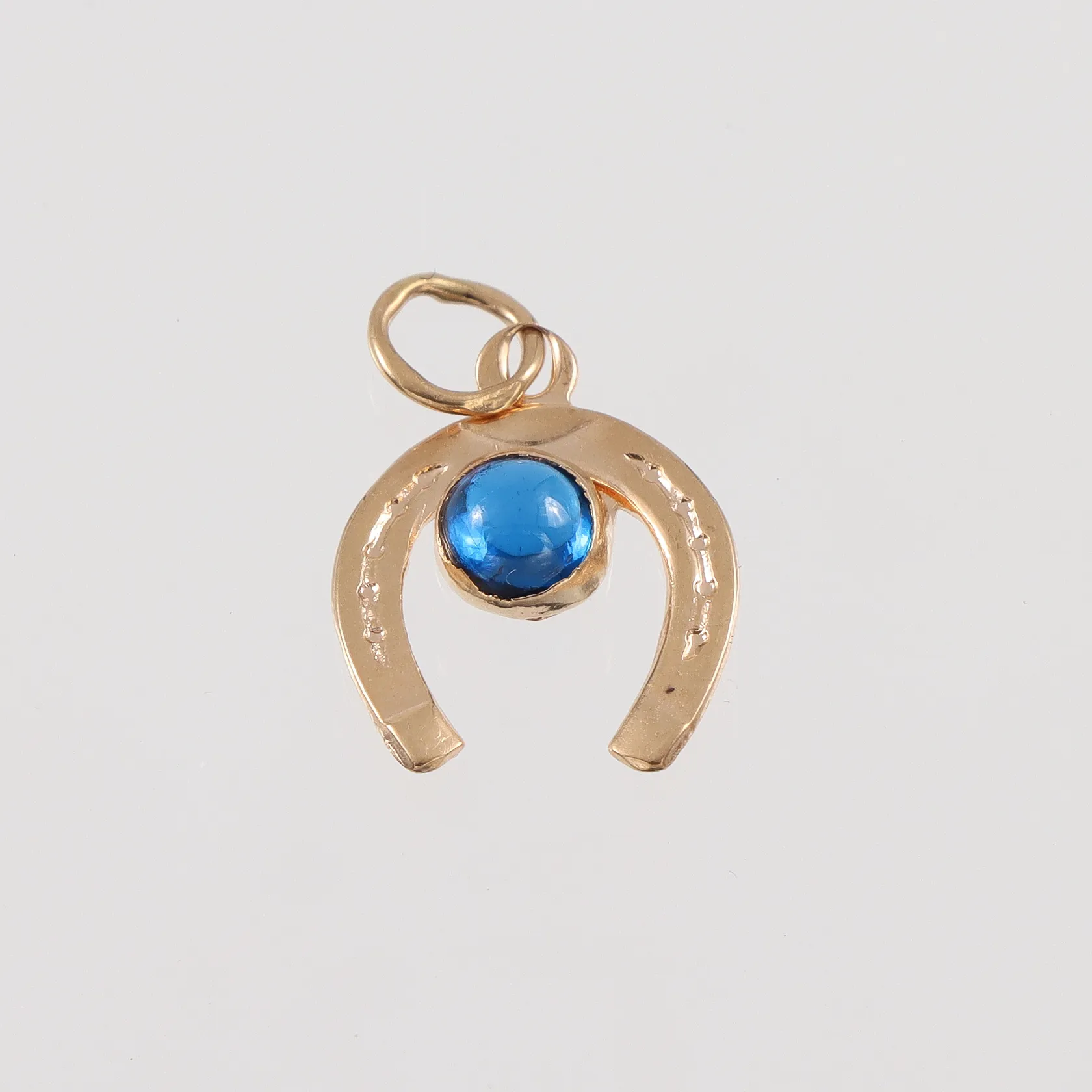 Berlock " Hästsko med blå sten " 18k, höjd ca12mm Vikt: 0,6 g.