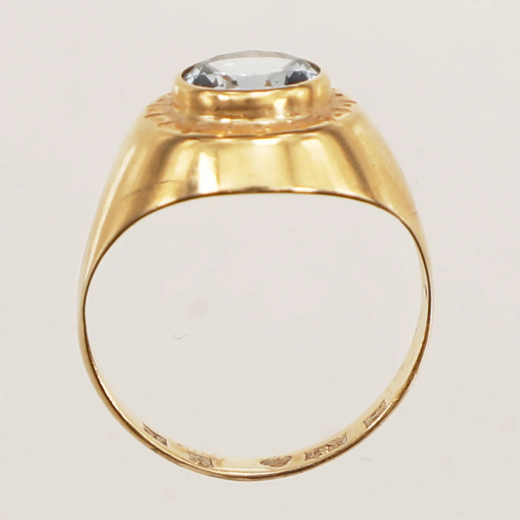 Ring med blå sten, stl 16¼, bredd 2,8-13,4mm, 18K Vikt: 2,8 g.