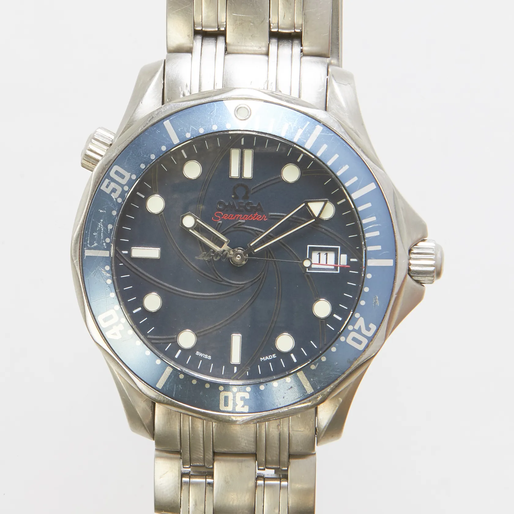 Herrur Omega Seamaster Professional "James Bond Casino Royale" stål, automatisk, 41,5mm, ref: 22268000, snr: 81723984, Cal. 2500, safirglas, datum, repig blekt dykring, heliumventil, stållänk, viklås med dykförlängning, manual, servicedelar, chronometercertifikat, pictogramkort, certifikat daterat 8/2-07 Norge, Nymans ur service kvitto 2017, box, ytterkartong, går ca -10 sec/dygn.