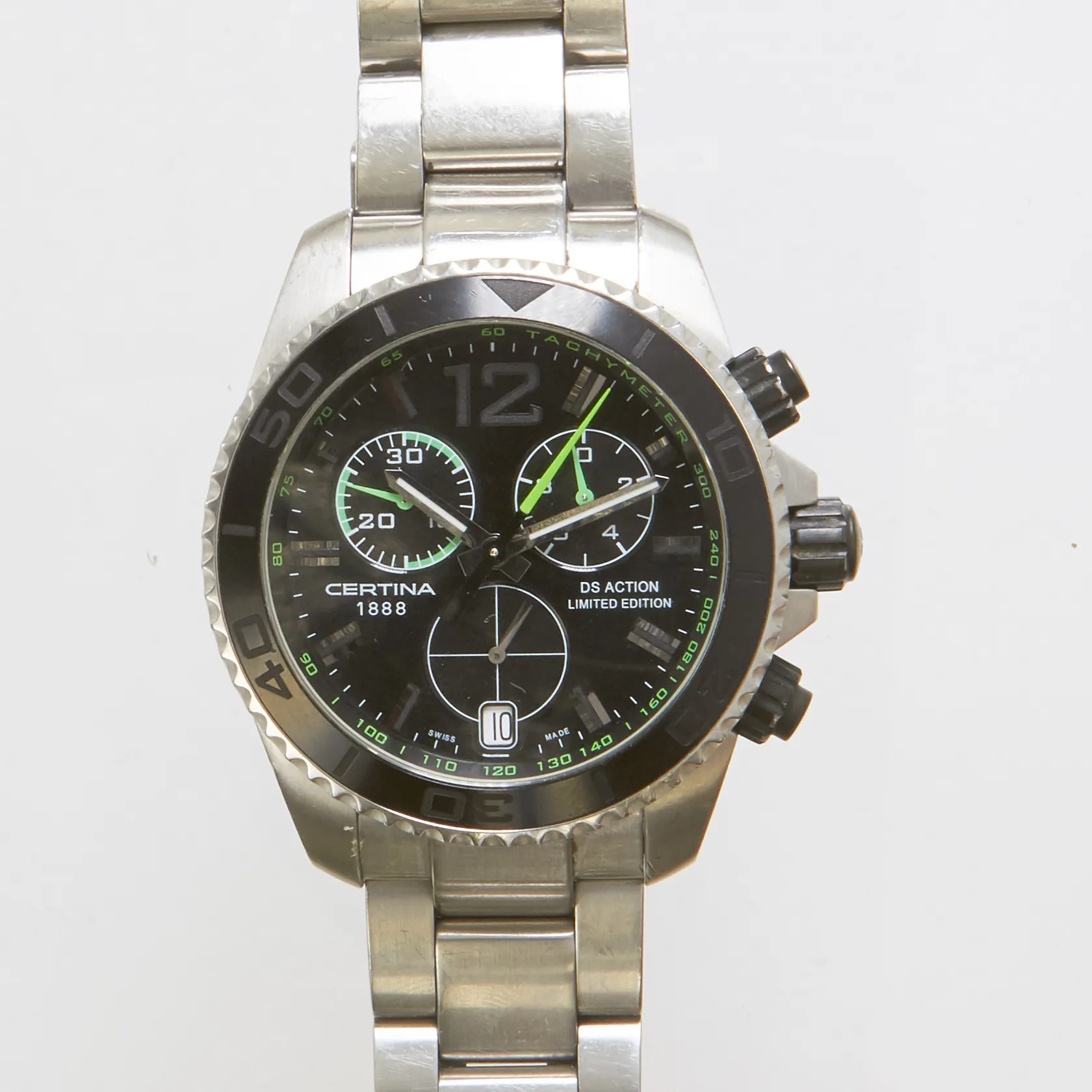 Herrur Certina DS Action Limited Edition Stjärnurmakarna, stål, quartz, 42,5cm, refnr: C013417 A SW1, nr: 494/500, Serienr: 11BC1233287, safirglas, datum, chronograph, stållänk, viklås, repig boett samt länkar, inga tillbehör.