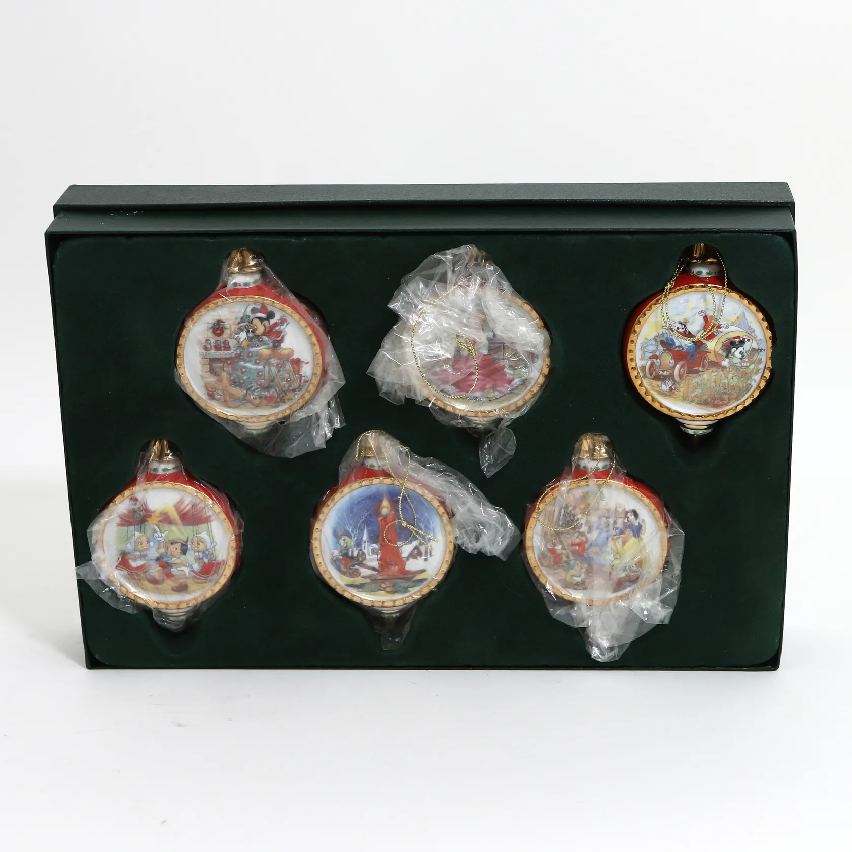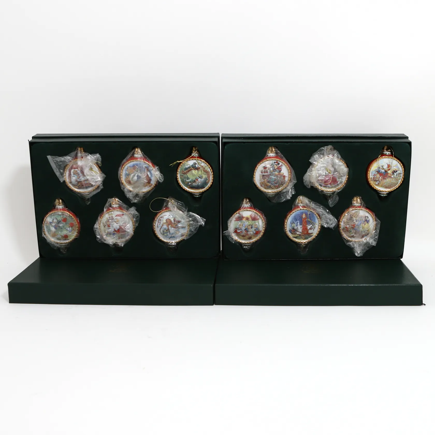 12 julgranskulor, Fyrklövern Disney, ca Ø10cm, bredd: 30mm, Stefan Lindahl, originallådor