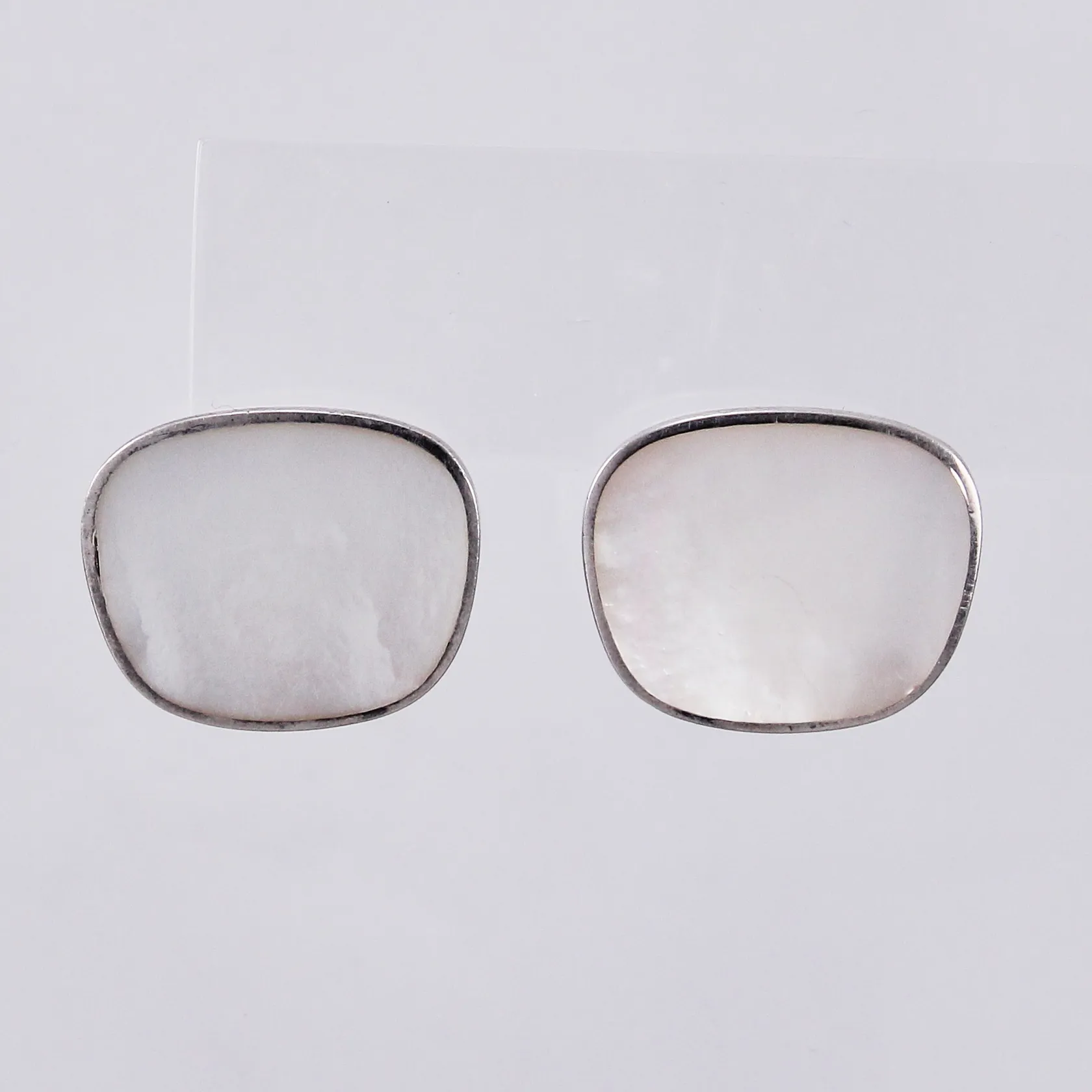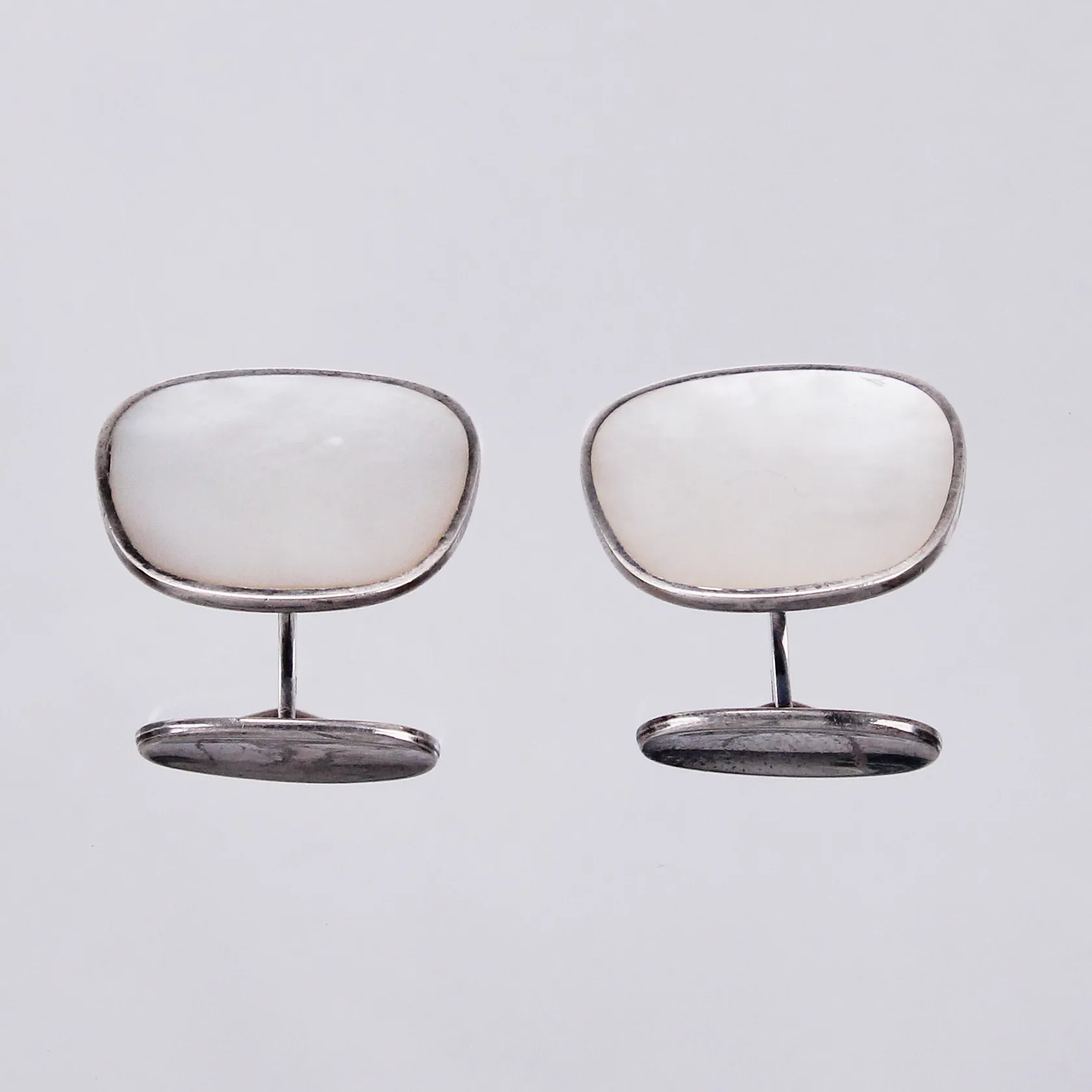 Ett par manschettknappar med pärlemor, längd ca 2,2cm, bredd ca 18mm, 830/1000 silver Vikt: 12,6 g.