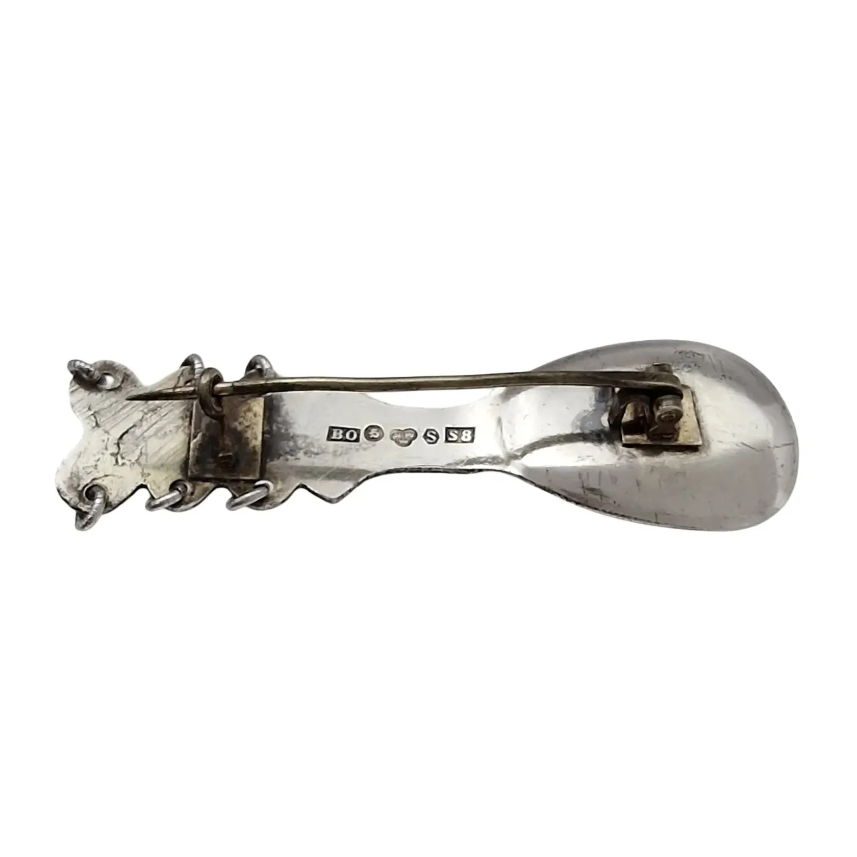 Vintage Brosch "Lappsked med hängen", silver, tillverkad av Bror Onnela Haparanda 1944, längd 52,5 mm, bredd 16 mm Vikt: 4,4 g.