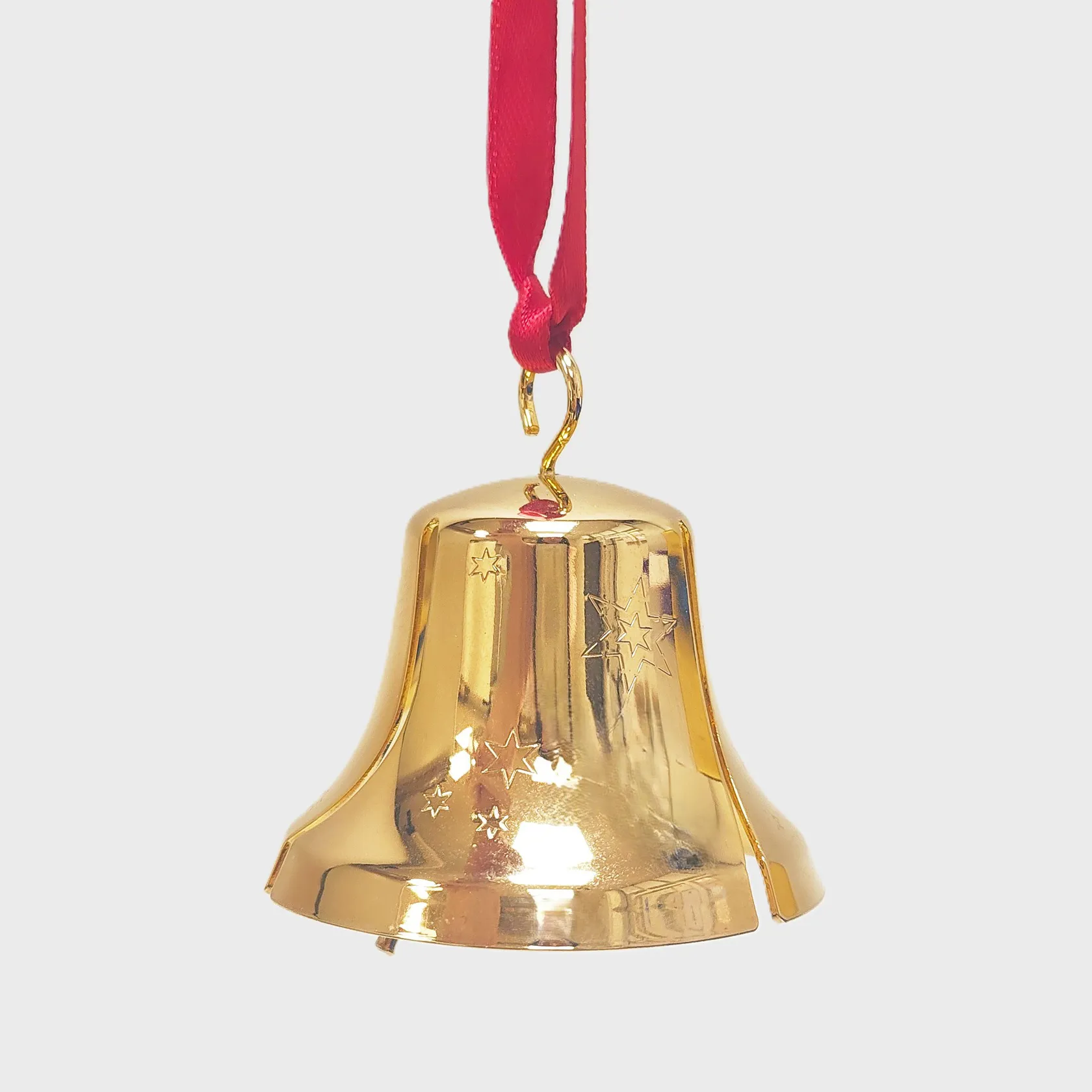 Juldekoration, Georg Jensen, årets julklocka 2010, guldpläterad mässing, skadad orginalförpackning.