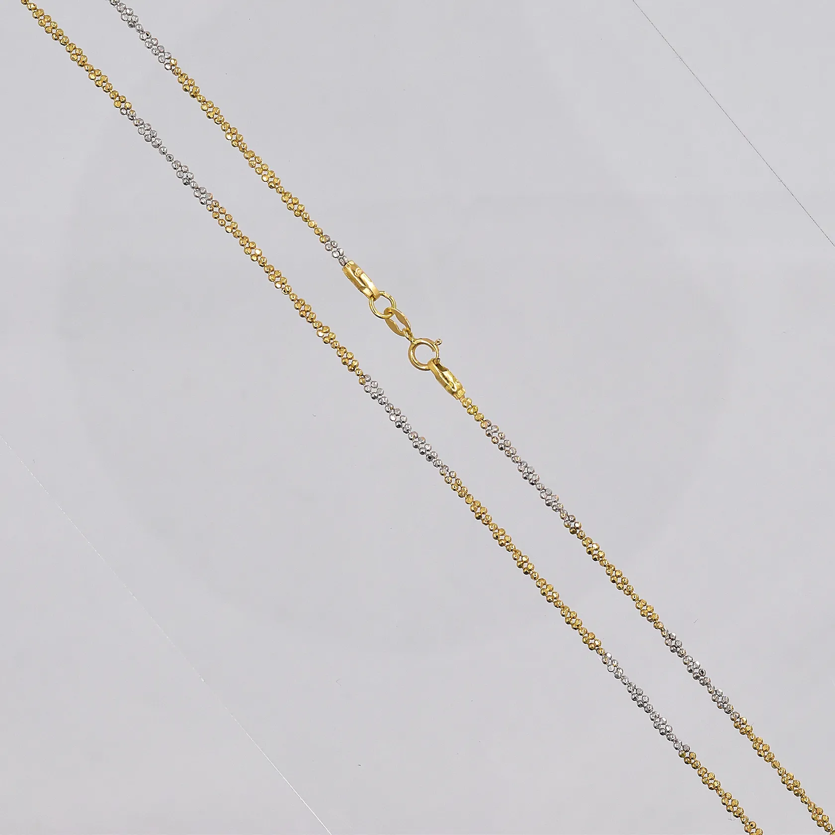 Kedja 58cm bredd ca 2mm, vit/gulguld, 18K Vikt: 5,5 g.
