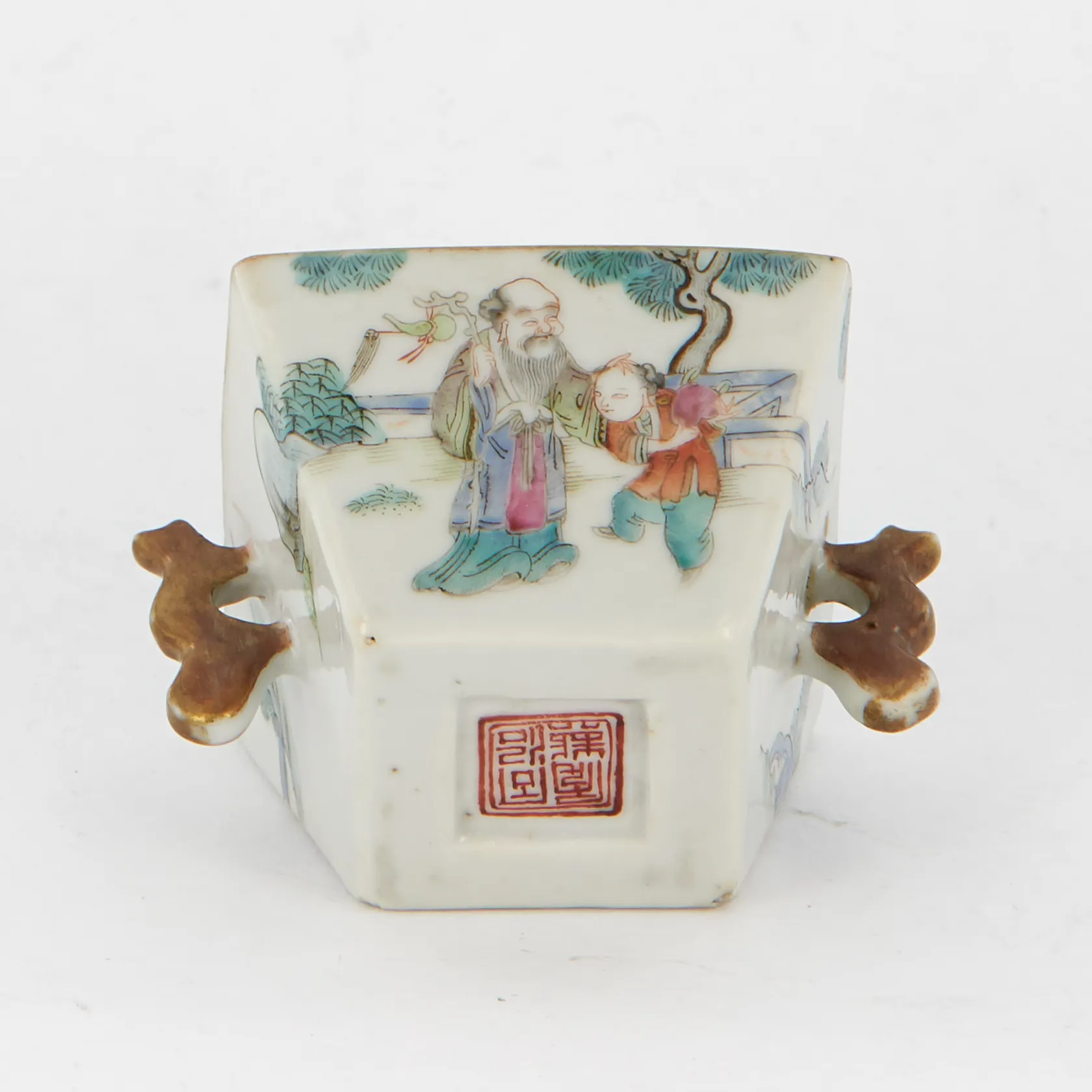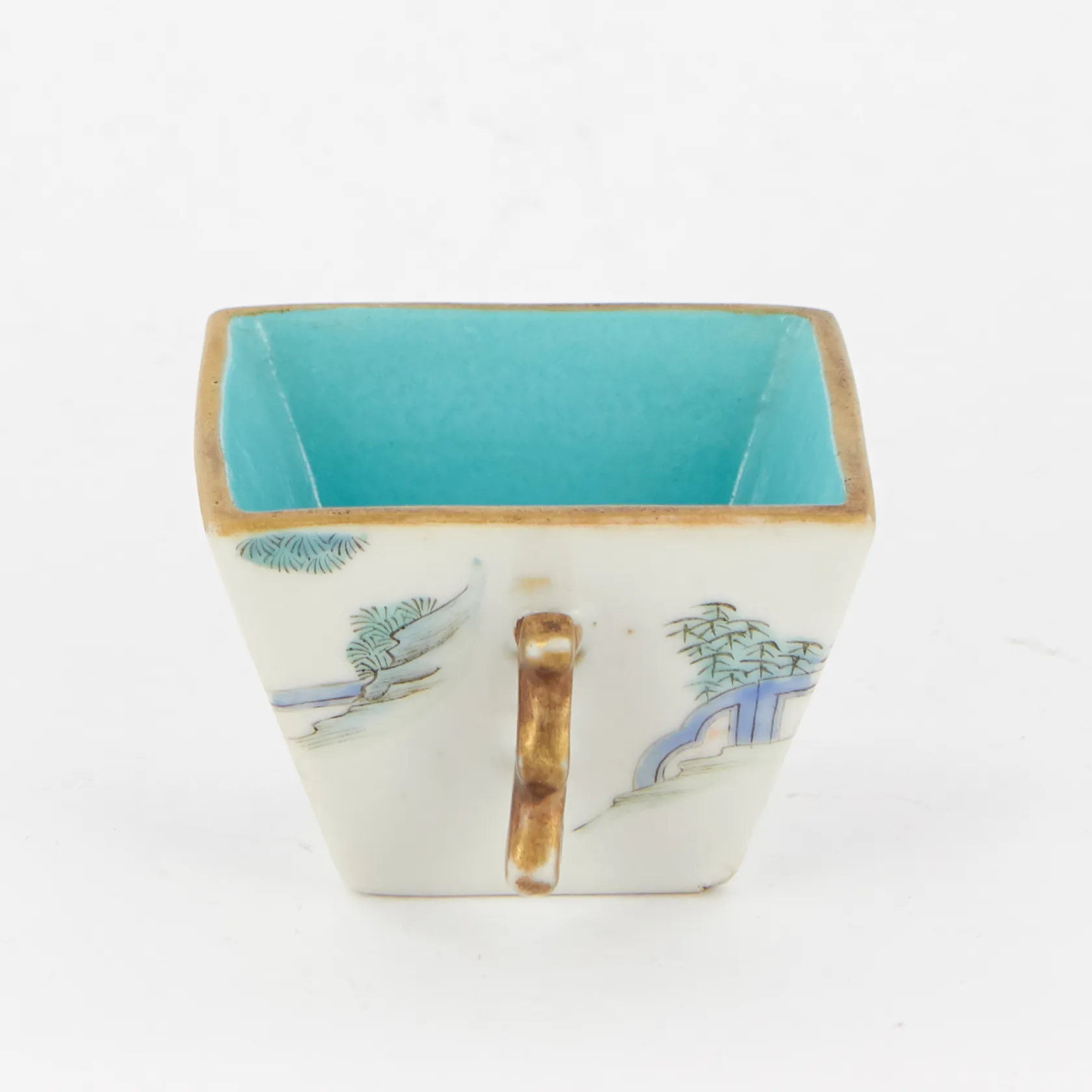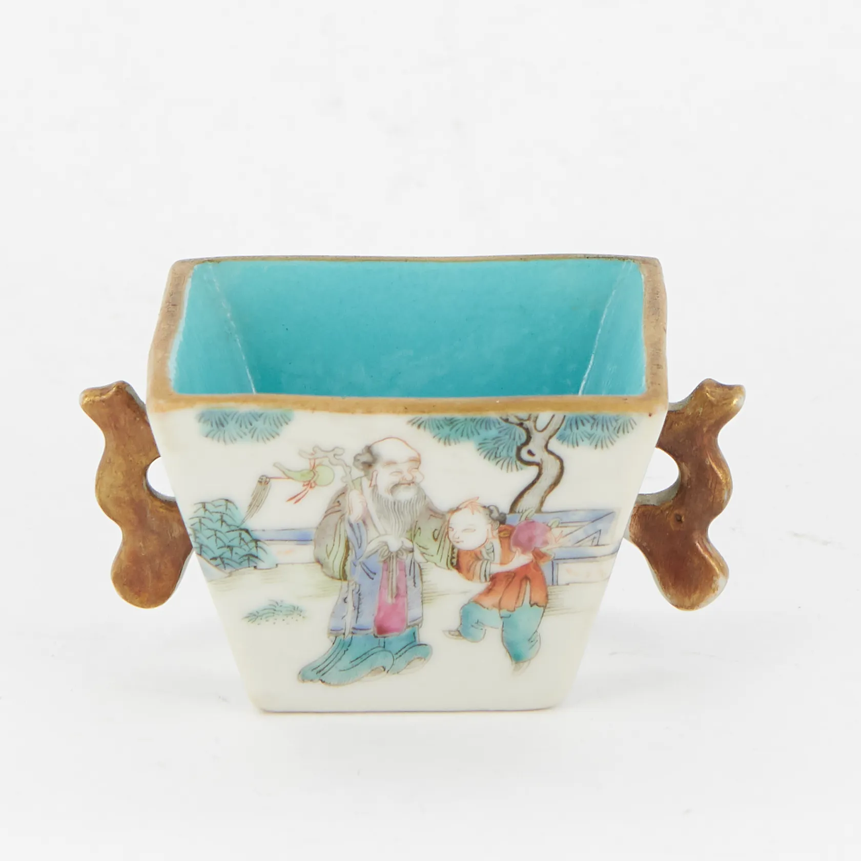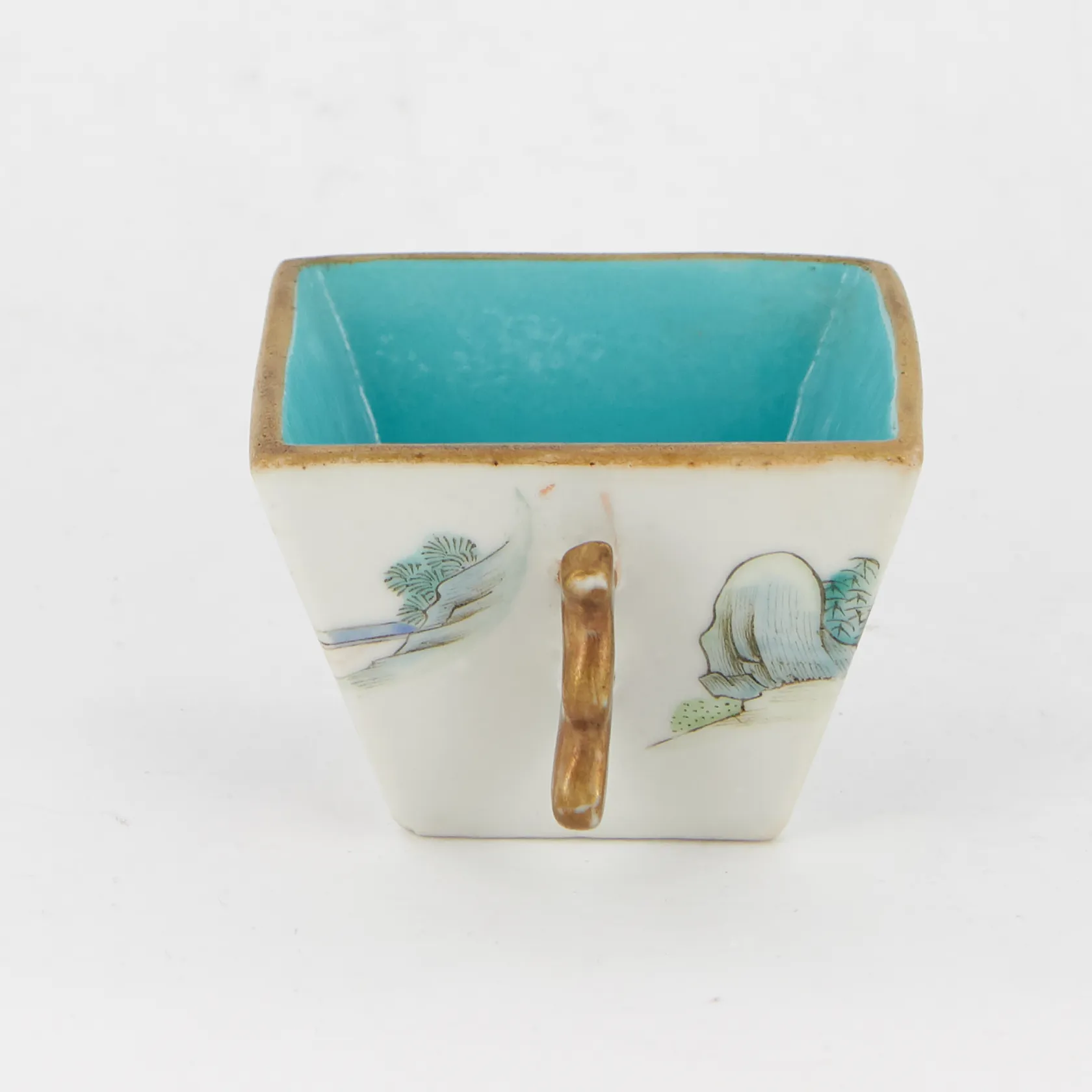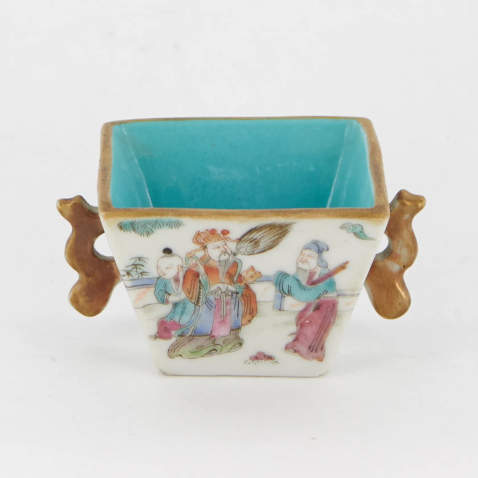 Kopp/skål, porslin, Kina, figurscen, Tongzhiperioden, 1860-1880, höjd 38mm, tre nagg/avslag på foten, färgbortfall på hänklar och ovankant