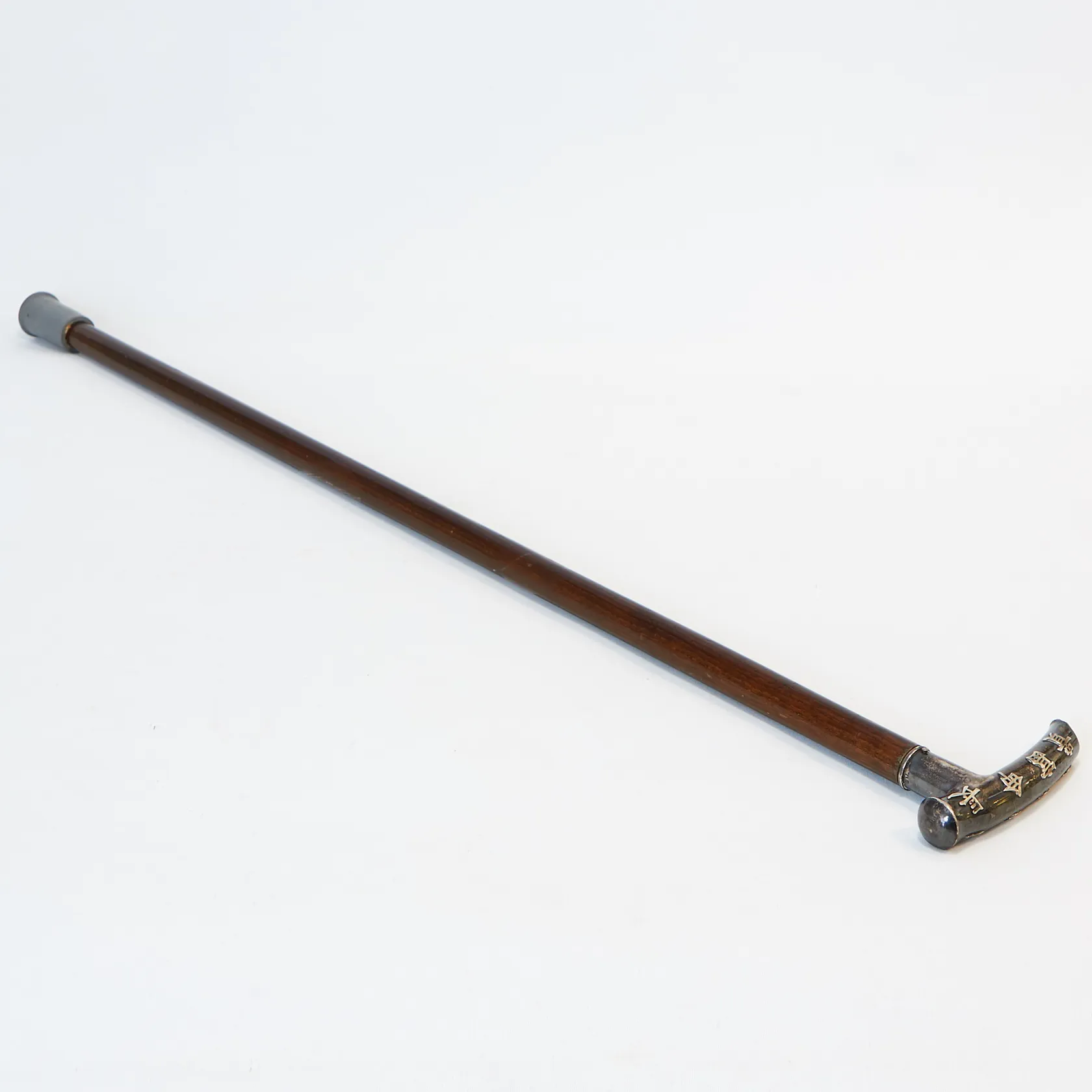 Träkäpp med handtag i silver, Kina, höjd ca 88,5cm, handtagets längd ca 12cm, handtag sitter något löst, silver 900/1000, bruttovikt: 370 gram Vikt: 370 g.