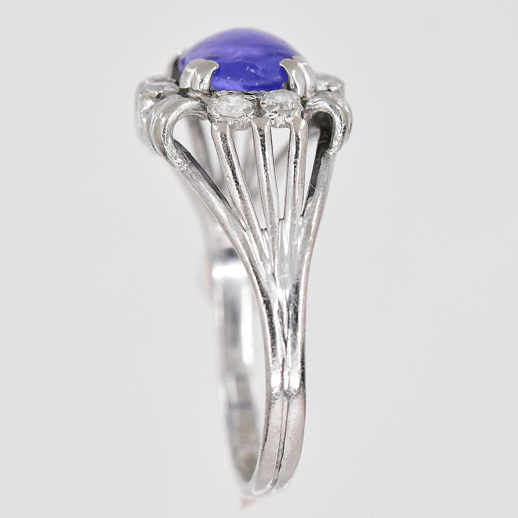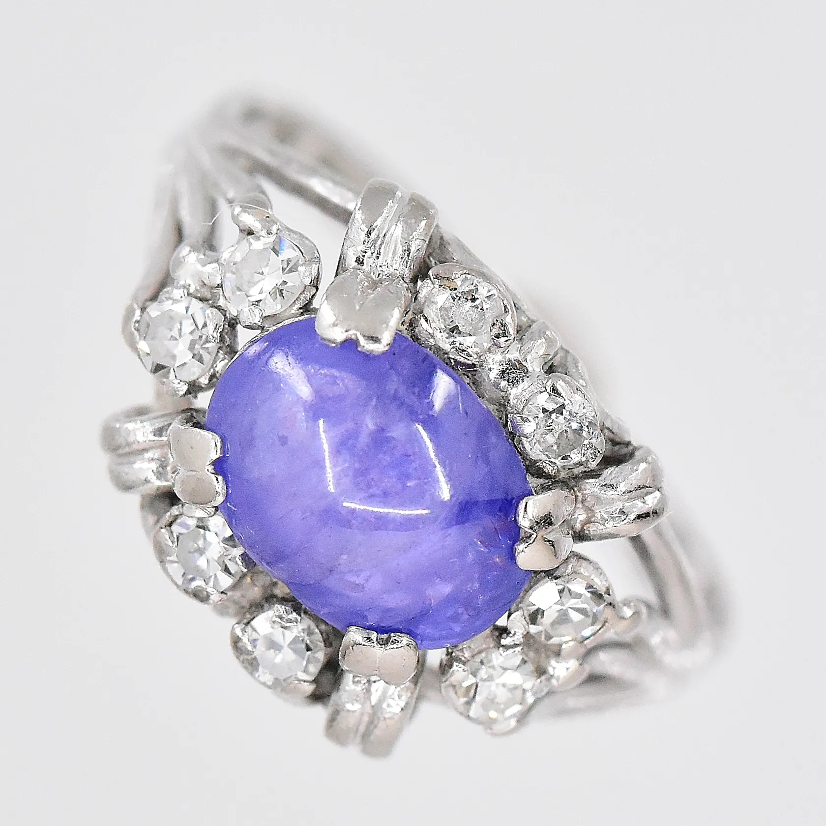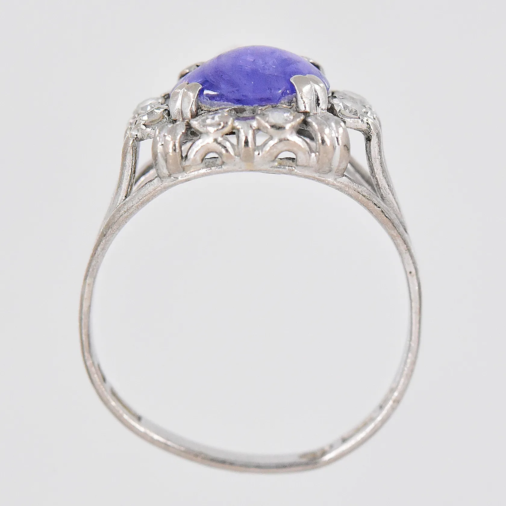 Ring vitguld diamanter ca 8x0,04ct, nagg lila sten, stl 18¼, bredd ovandel 11,5mm, 18K Vikt: 4,4 g.