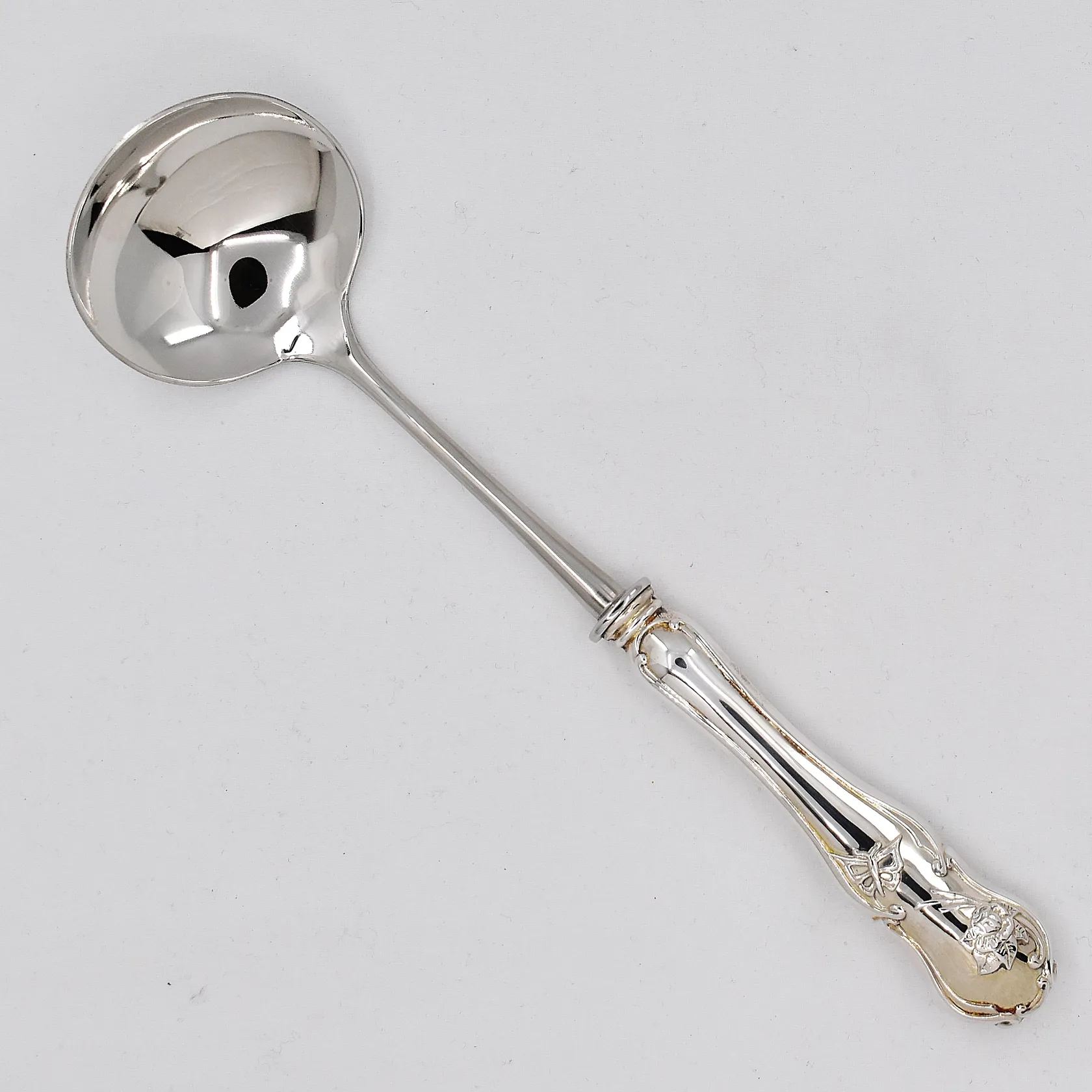 Serveringssked, modell Meya Lerible, Mema, Fyrklövern, längd 22,5cm, stålblad, silver 925/1000, bruttovikt 106,7g Vikt: 106,7 g.
