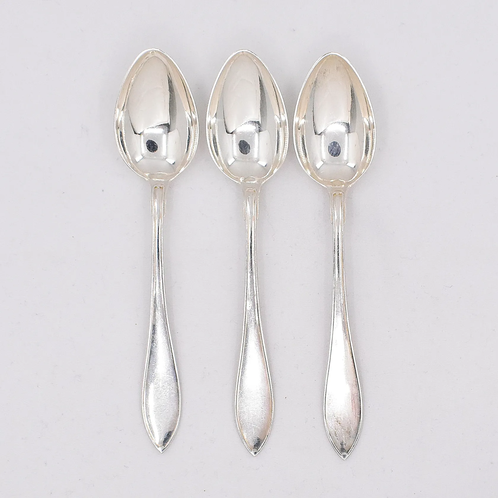 3 Kaffeskedar, modell Svensk Spetsig, längd 12,3cm, graverade, silver 830/1000 Vikt: 38 g.