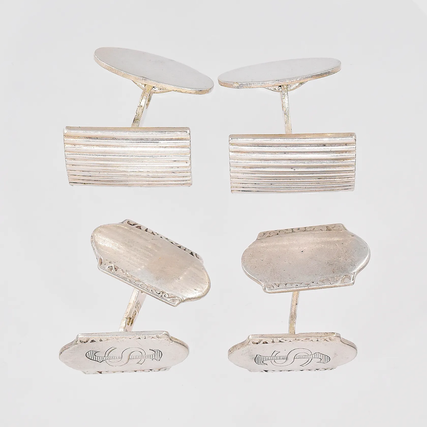 2 par Manschettknappar, gravyr, silver 830/1000 Vikt: 21,3 g.