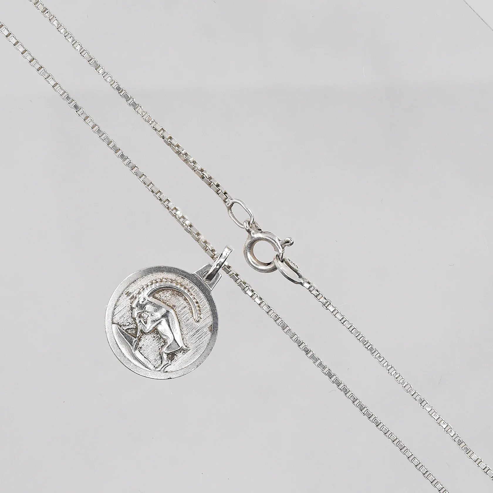 Kedja Venezia, 47cm, bredd 1,3mm, hänge stenbocken Ø 16mm, låsring öppen, silver 925/1000 Vikt: 5,5 g.