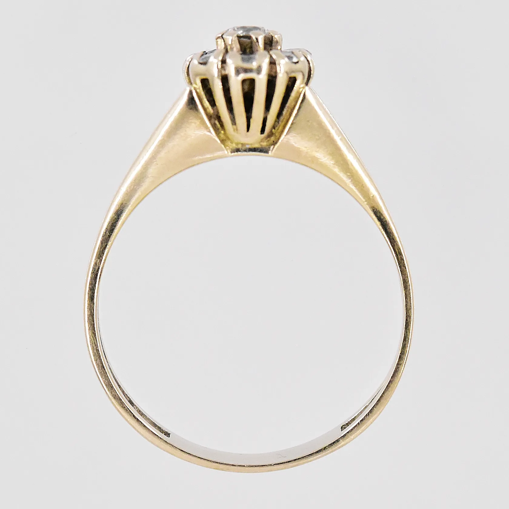 Ring, diamanter ca 0,28ctv, stl 18, ovandel Ø 7,6mm, vitguld bör omrodieras, 14K Vikt: 3,1 g.