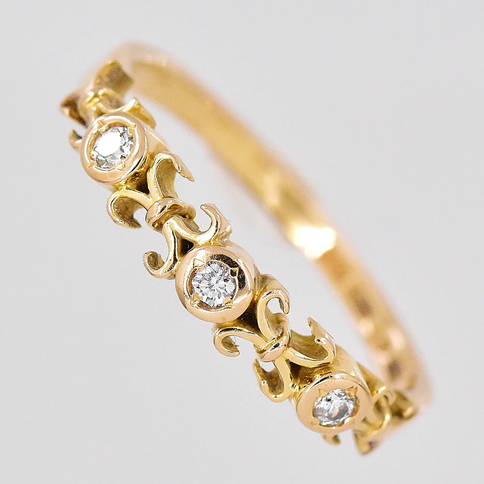 Ring, diamanter ca 3x0,03ct, stl 18¾, bredd ovandel 3,8mm, 18K Vikt: 2,6 g.