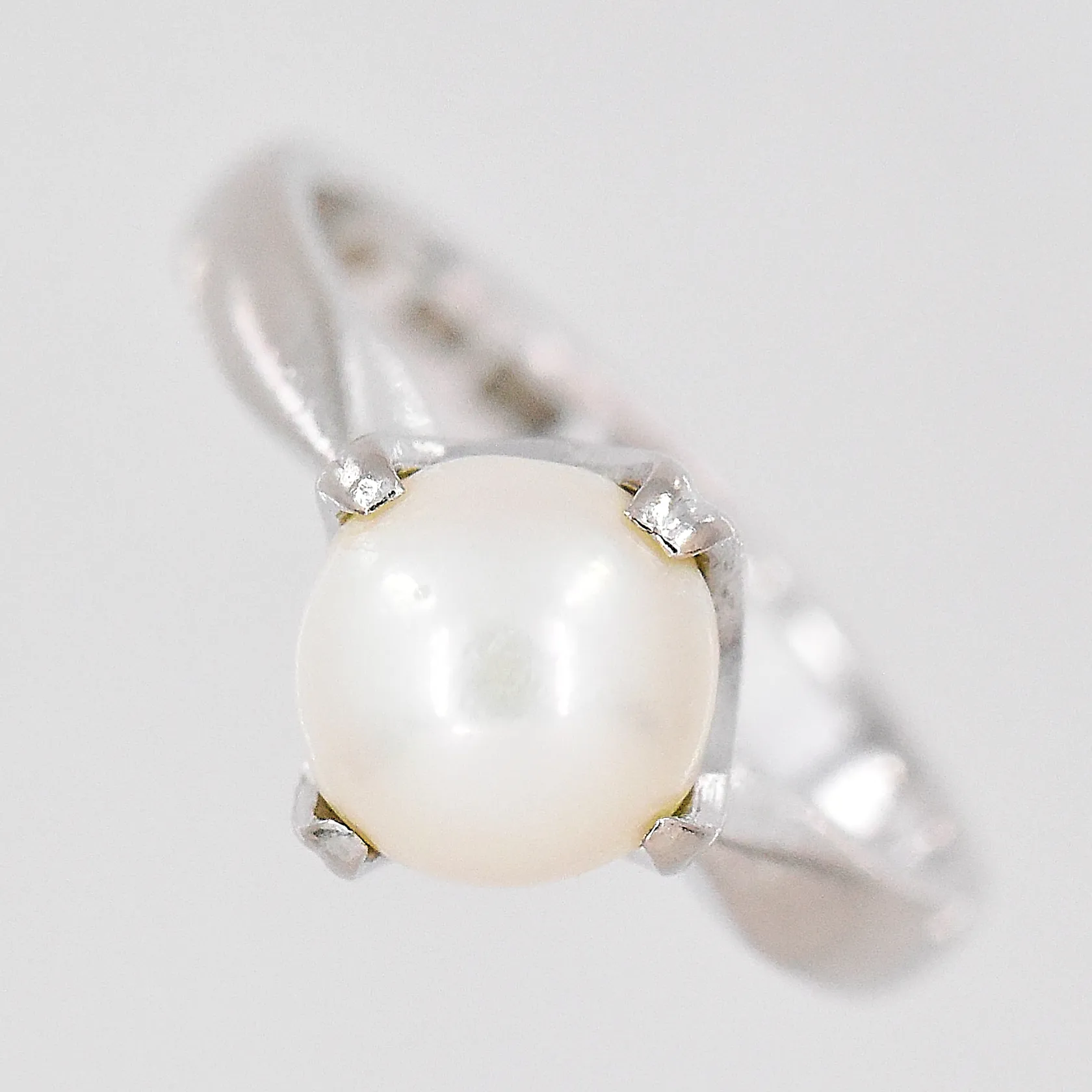 Ring vitguld, stl 15½, pärla Ø 6,8mm, 18K Vikt: 3,9 g.