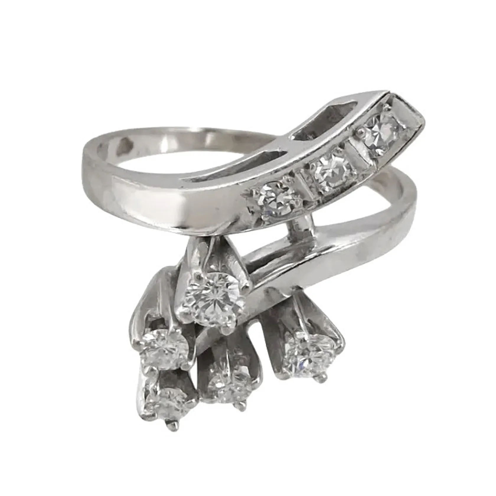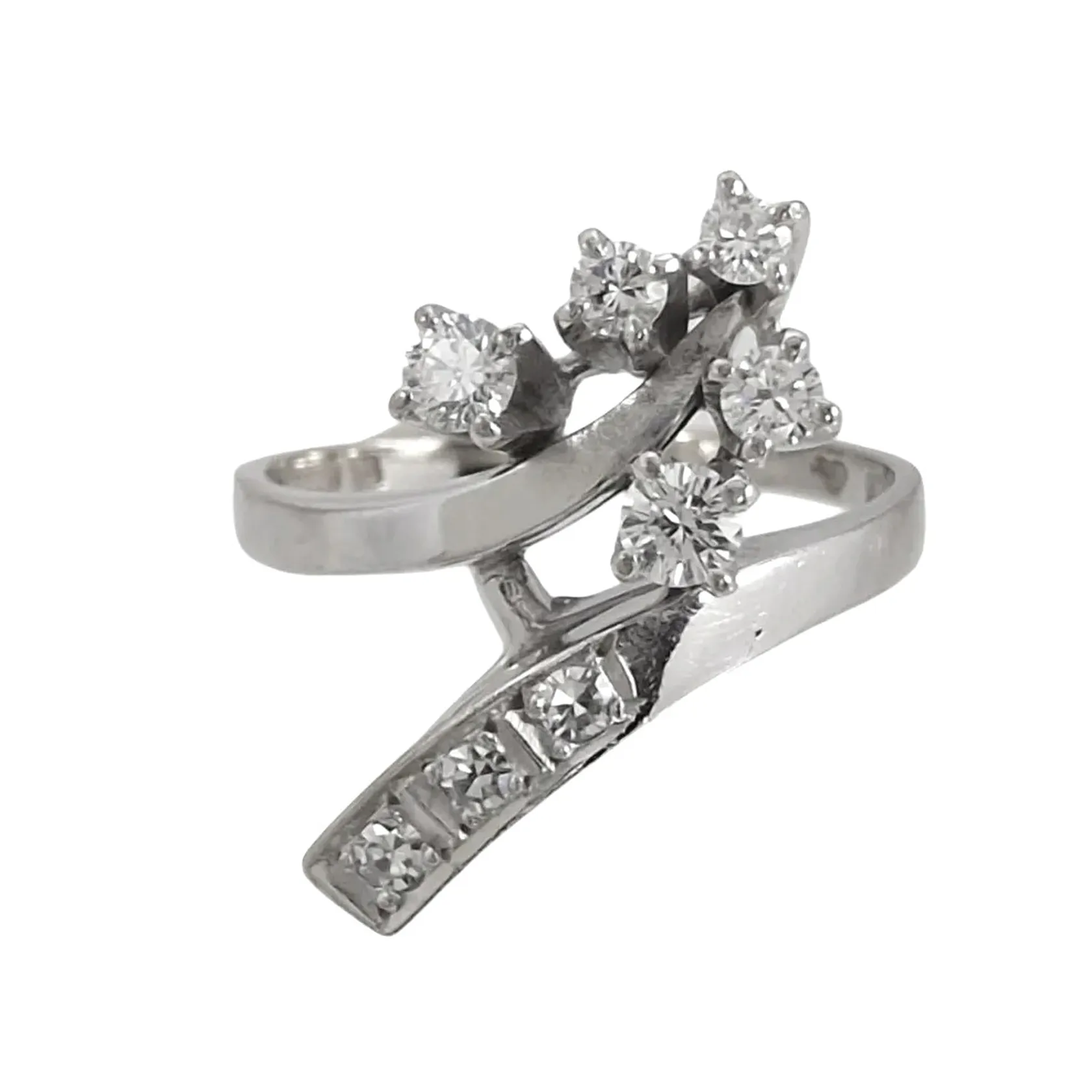 Diamantring 18K vitguld Diamanter 8 st - totalt 0,36ct (svagt graverat på fattningens insida), Guldvaruaktiebolaget G. Dahlgren & Co Ab (Gd&Co), Malmö, svensk kontrollstämpel, Ø17,0 mm, bredd 1,7 - 18 mm, fint skick Vikt: 4,6 g.
