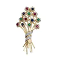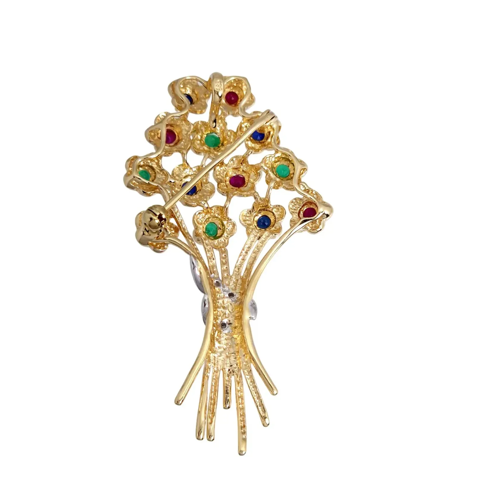 Hänge Brosch Blombukett 14K guld Rubiner Smaragder och Safirer, Diamanter 3 x 0,005ct, storlek 29x55 mm, mycket fint skick, stenar utan anmärkning Vikt: 9,7 g.