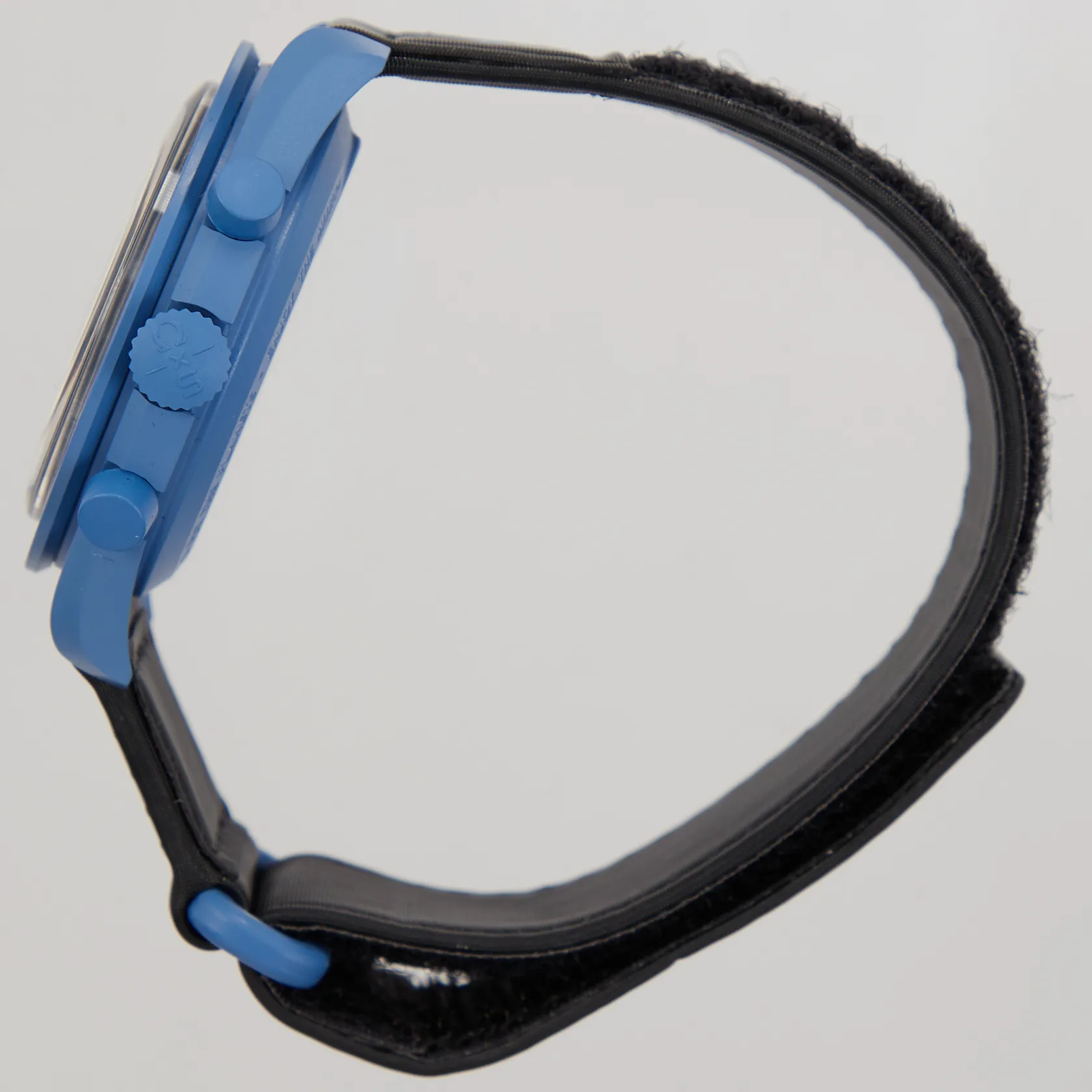 Armbandsur Omega X Swatch Mission to Neptune, bioceramic, Ø40mm, quartz, kronograf, velcro-band, manual, certifikat Februari -25, originalbox