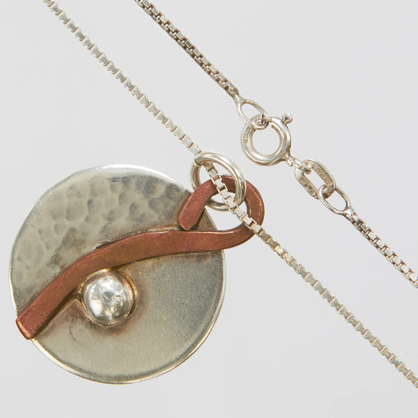 Silverkedja/hänge, venezia, längd: 71cm, bredd: 1mm, hänge med koppardetalj, 36,7x25,6mm, 925/1000 Silver Vikt: 11,9 g.