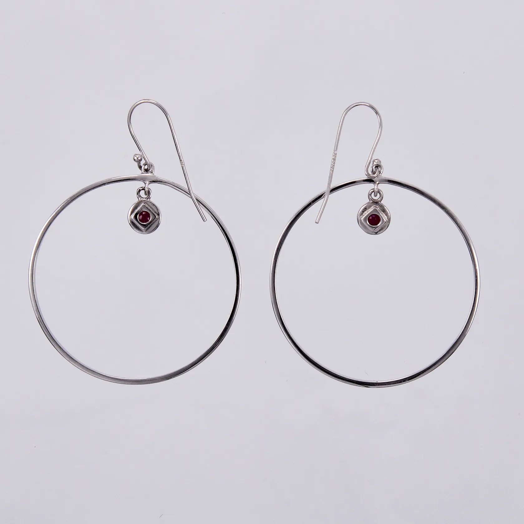 Ett par örhängen med röda stenar längd: ca 5cm, bredd: ca 40mm, 925/1000 silver Vikt: 6,5 g.