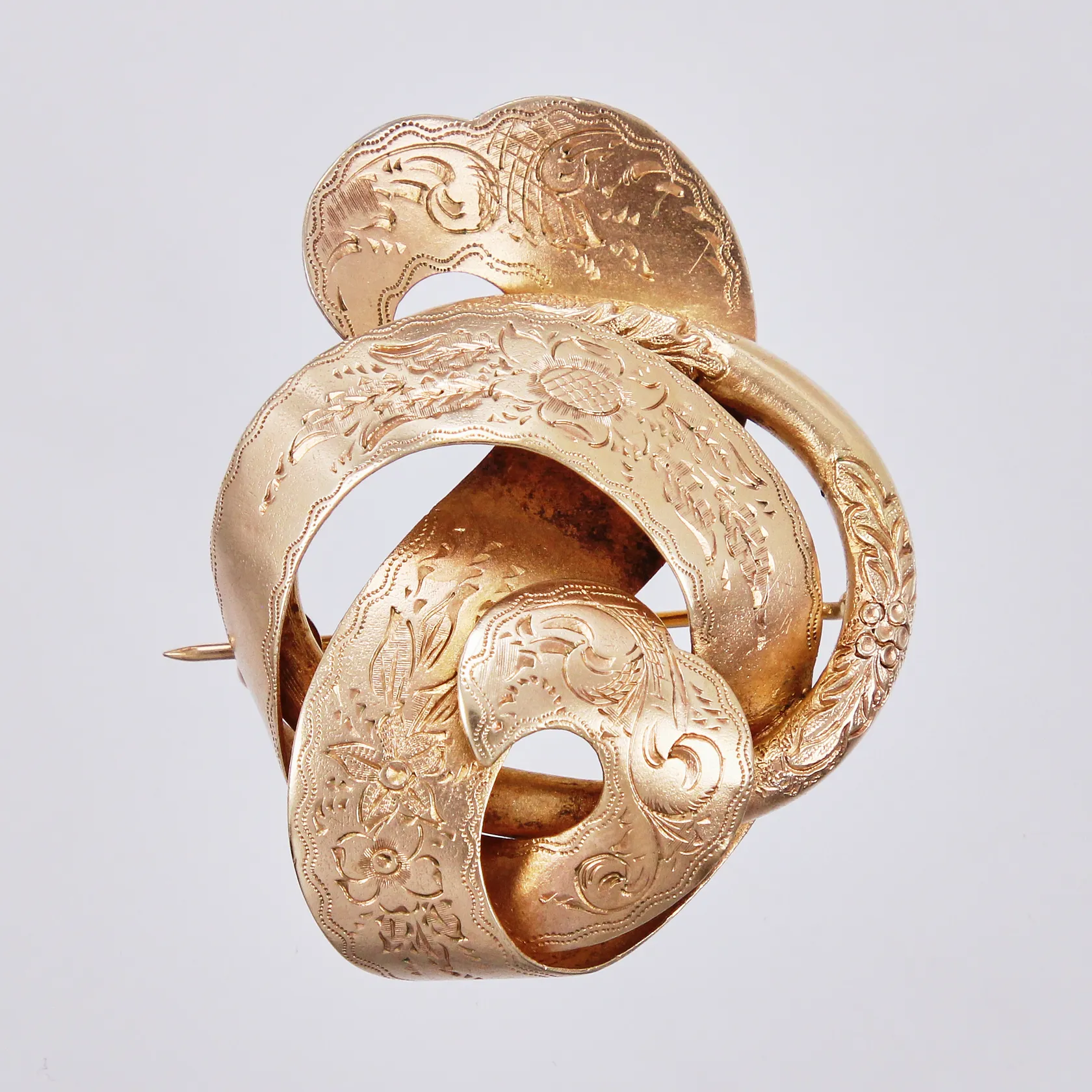 Brosch, längd: 4,8cm, bredd: ca 2,5-4cm, år 1869, förgyllt silver, 830/1000 Vikt: 14,2 g.