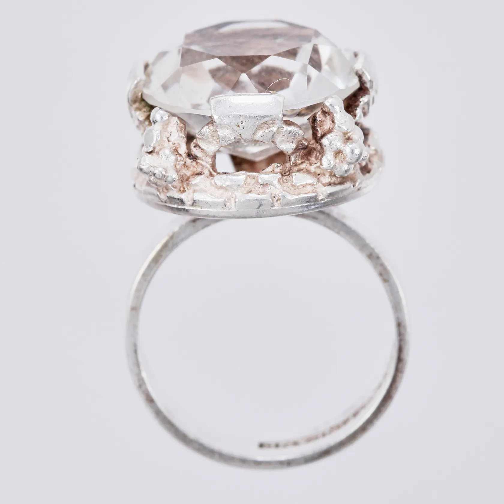 Ring med bergskristall, stl: 16, bredd: ca 5-15mm, Martti Viikinniemi, 830/1000, silver Vikt: 7,5 g.