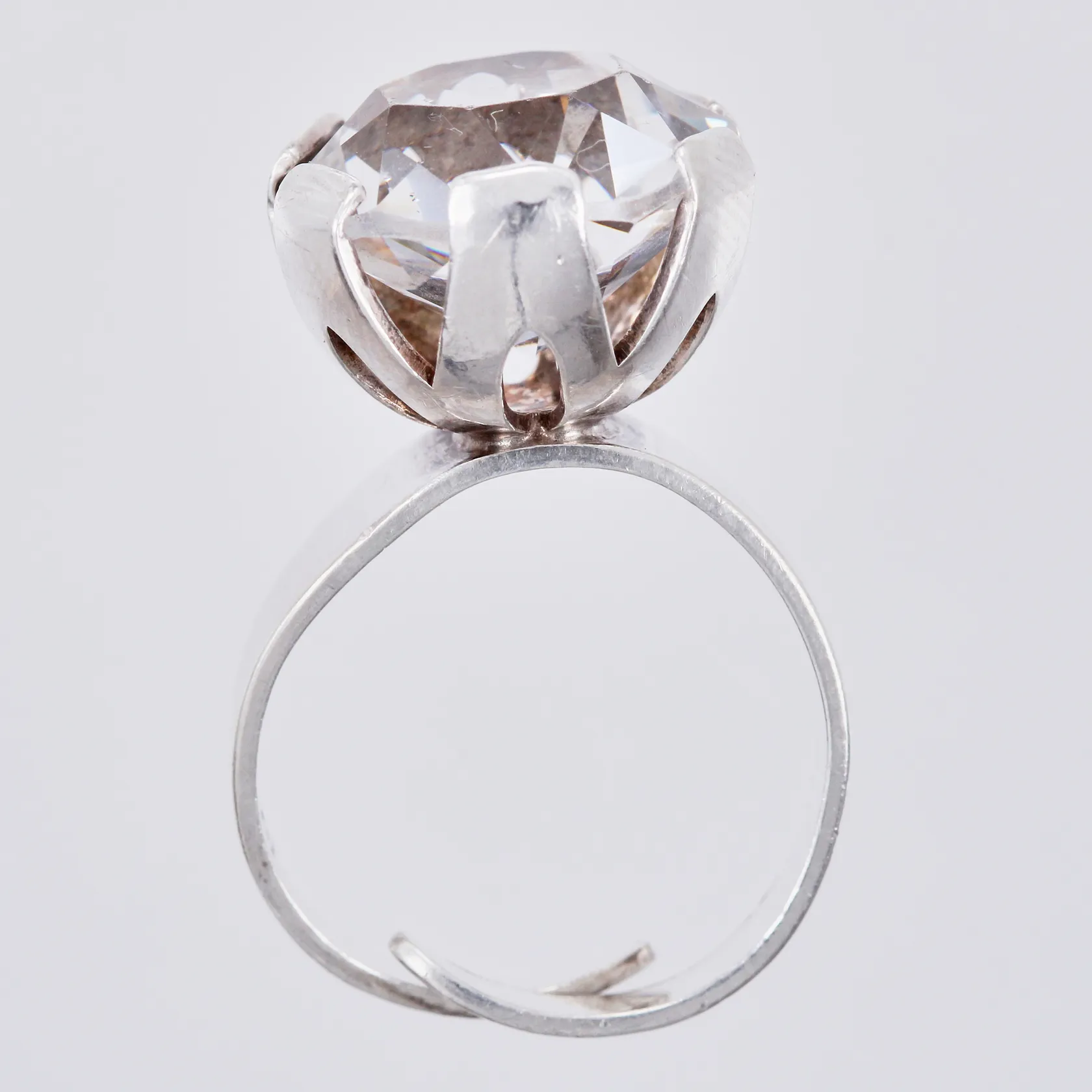 Ring med vit sten, stl: 16¾, justerbar, bredd: ca 6-15mm, Hedbergs Guld år 1974, 830/1000, silver Vikt: 6,4 g.