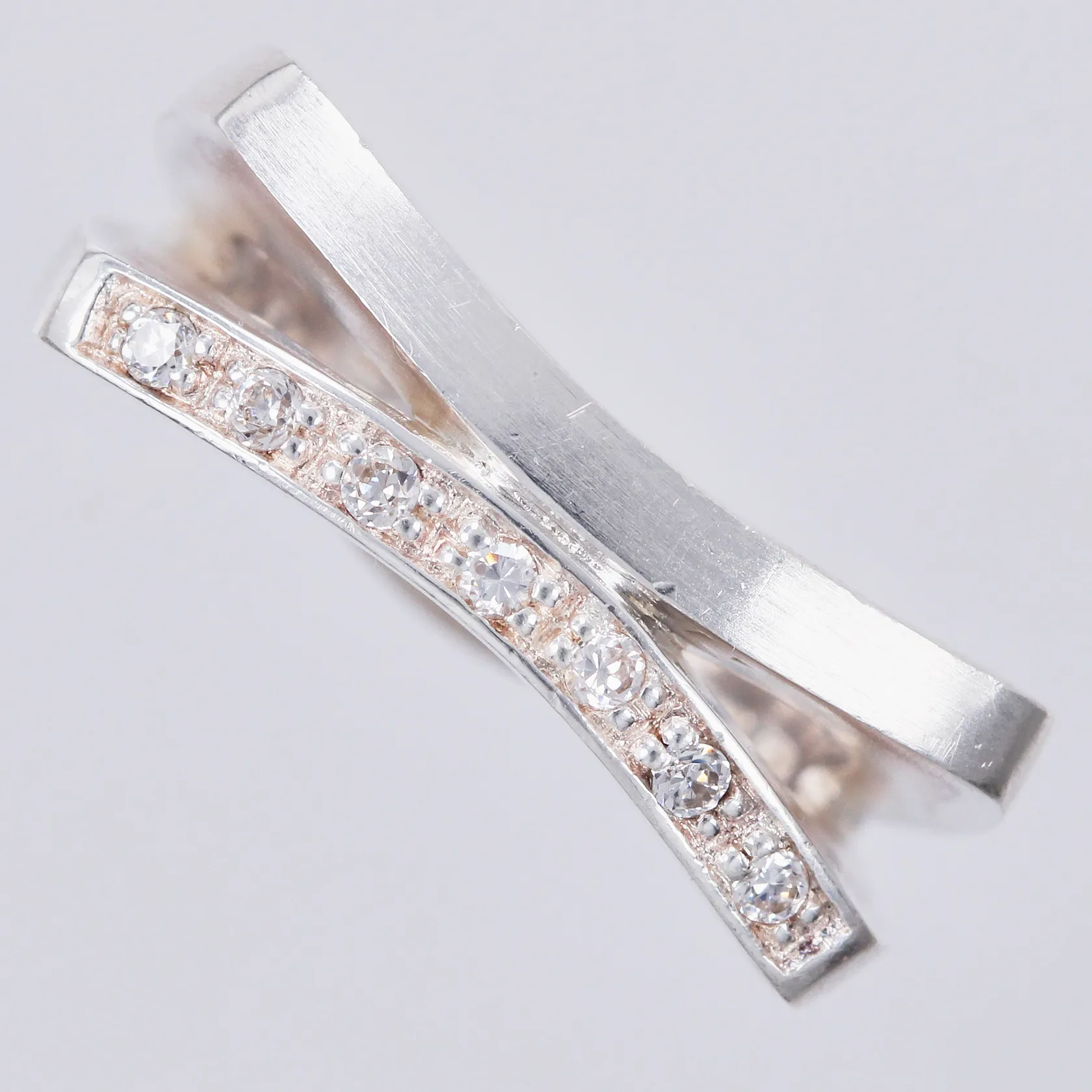 Ring med vita stenar, stl ca 18, bredd ca 4-8mm, GHA, 925/1000 silver Vikt: 8,8 g.