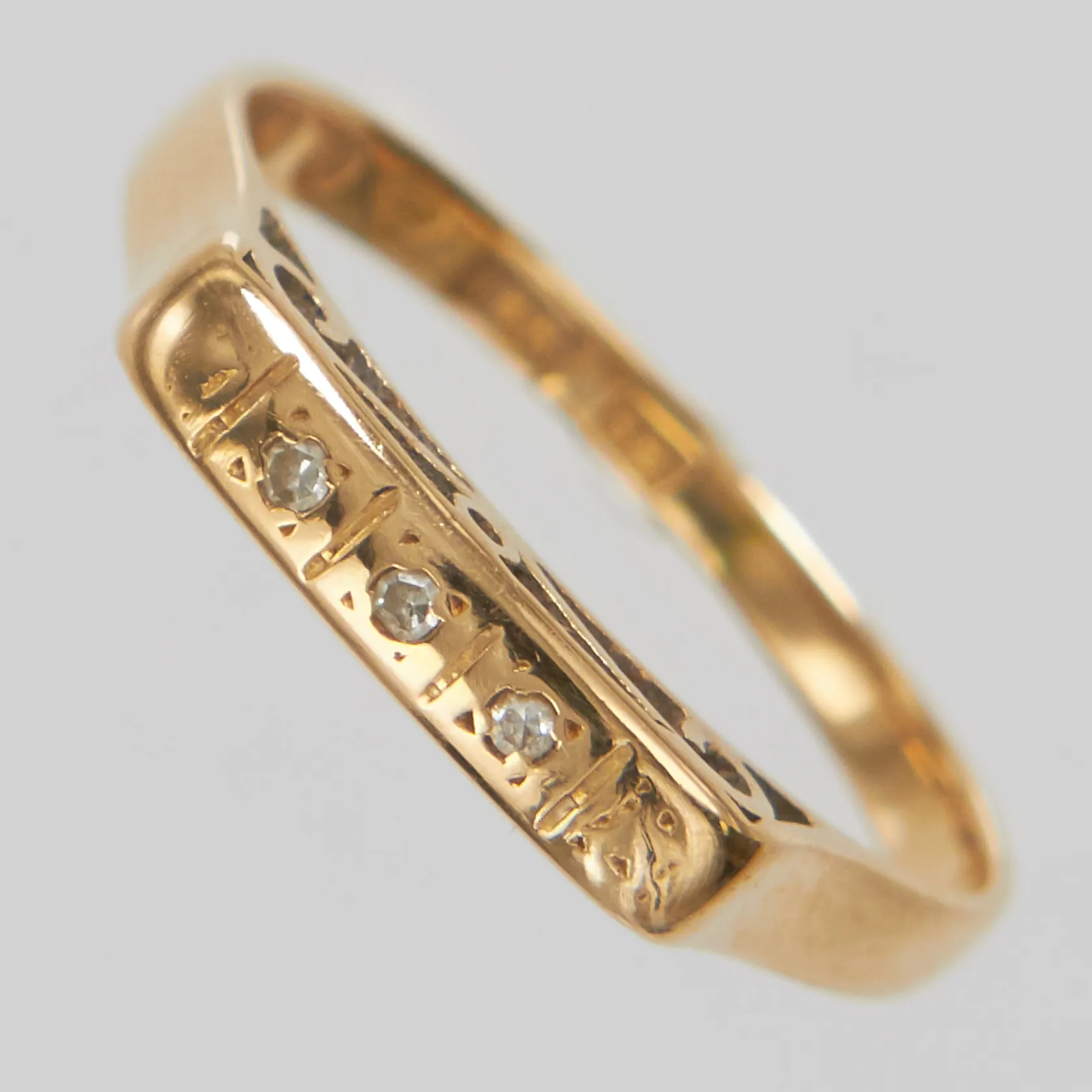Ring, åttkantslipade diamanter 3xca0,01ct, stl 16¾, bredd 1,5-2,5mm, 18K. Vikt: 1,5 g.