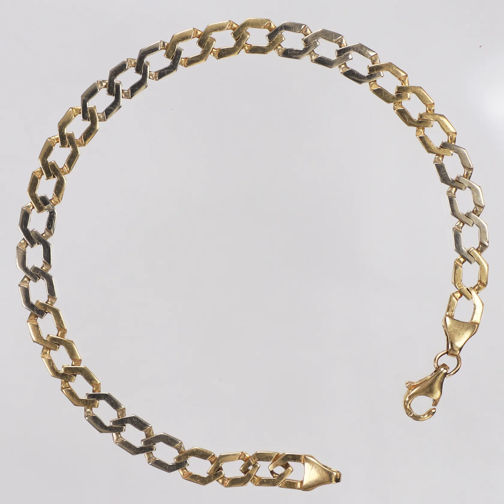 Armband Pansar, 22cm, bredd 6mm, tvåfärgat, bucklor på lås, 18K Vikt: 12,7 g.