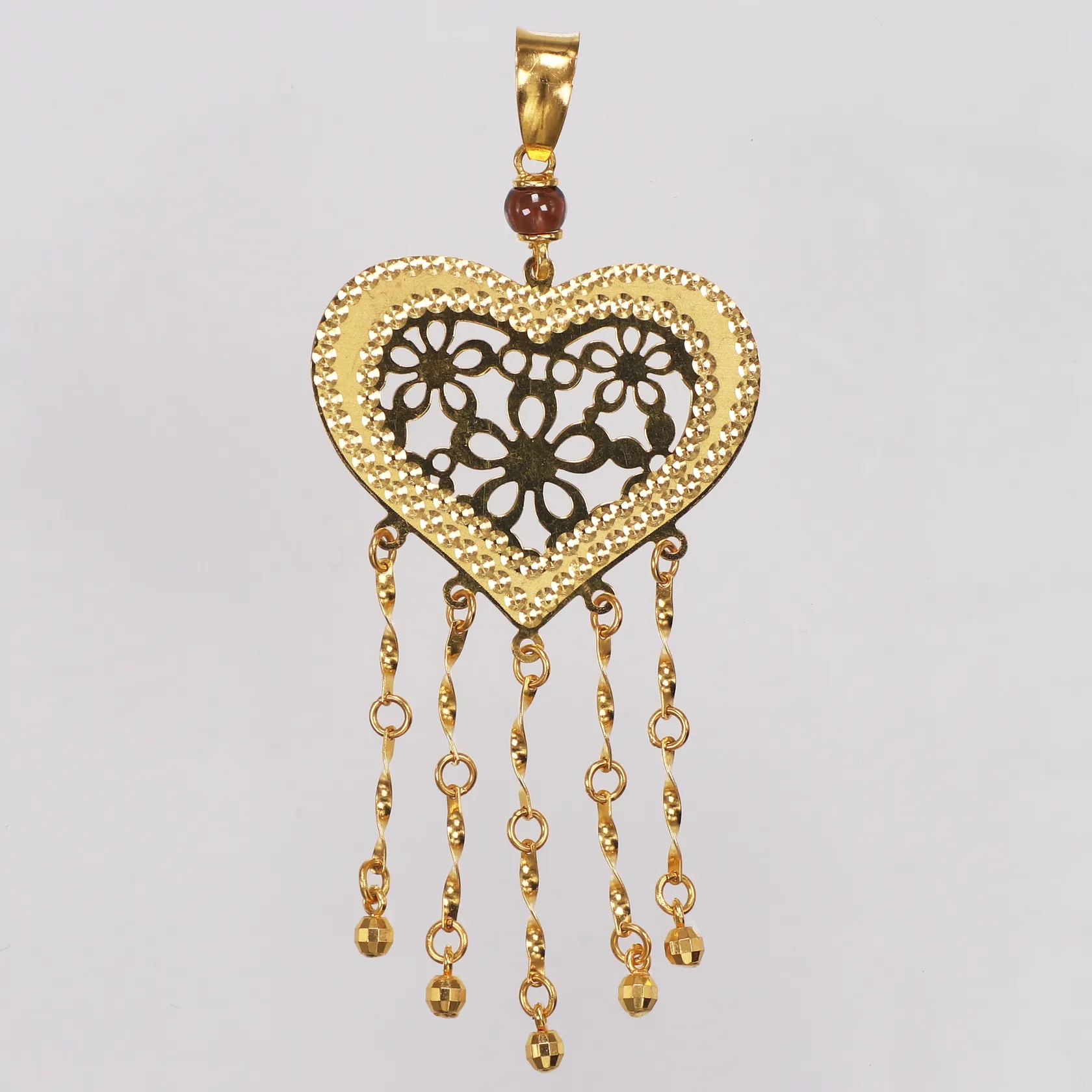 Hänge hjärta brun sten, genombrutet mönster, längd 70mm inkl ögla, bredd 31mm, 21K Vikt: 4,4 g.