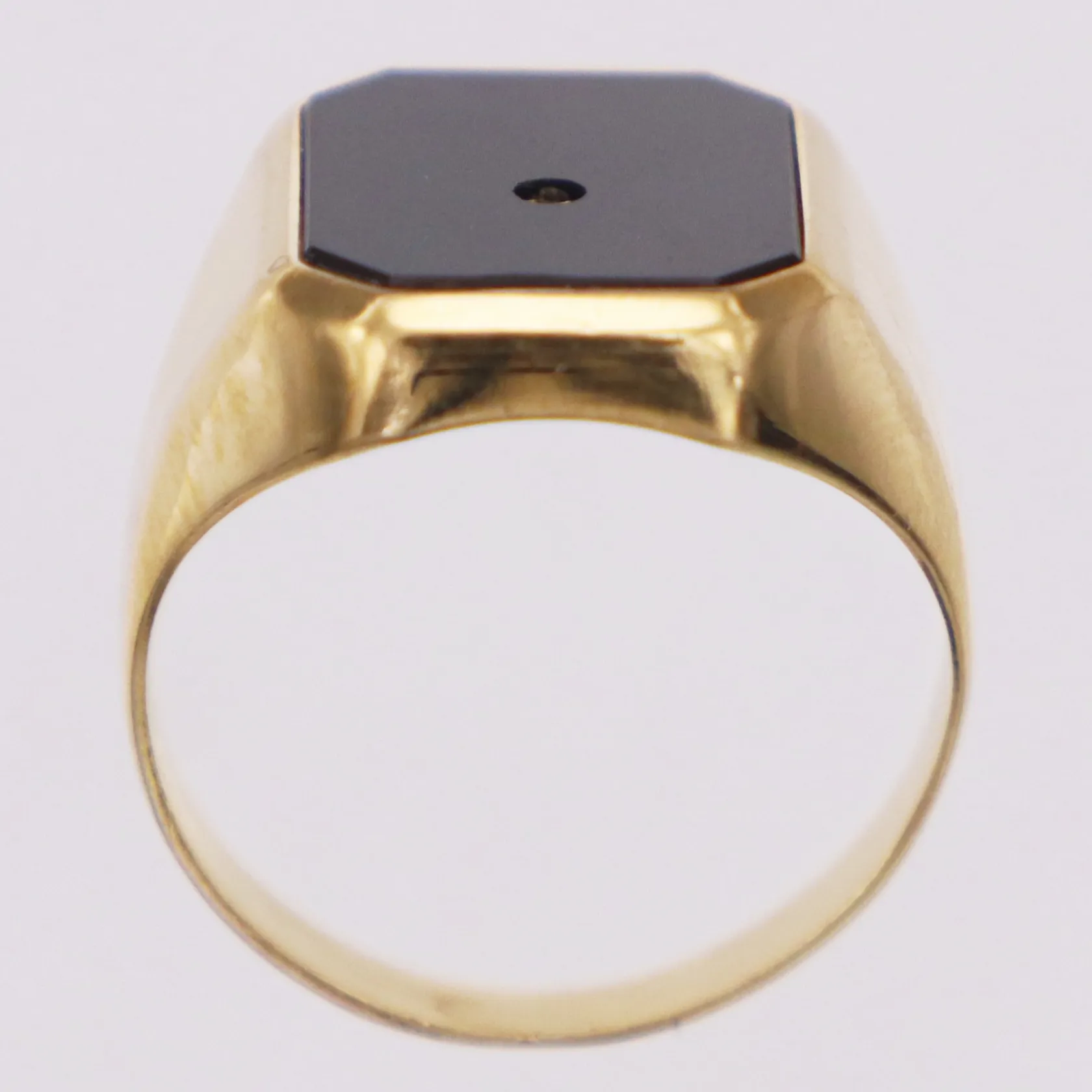 Klackring onyx, vit sten, Carlsén, stl 18¾, bredd 3-17,4mm, 18K Vikt: 6,4 g.