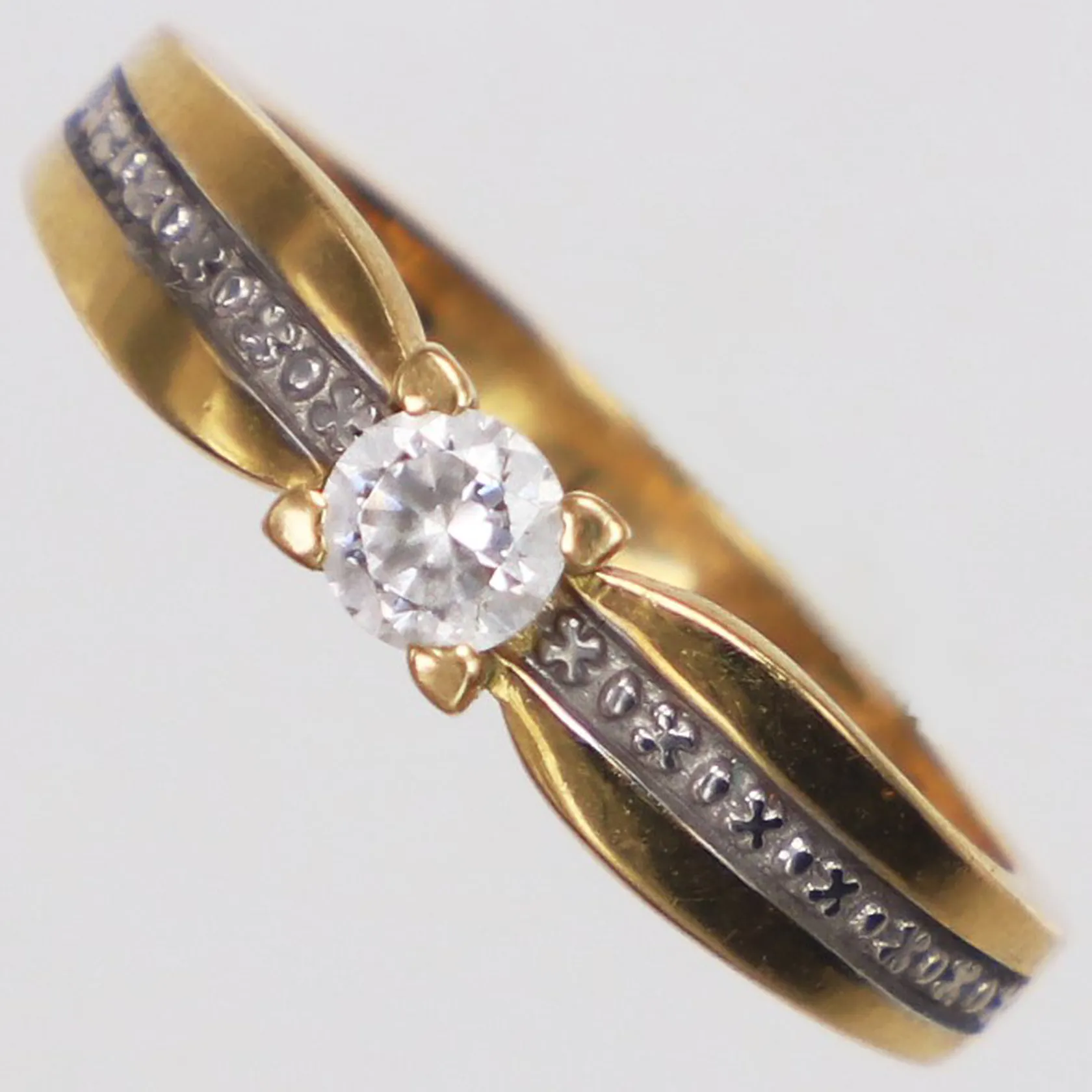 Ring vit sten, stl 15¾, bredd 2-4mm, 18K Vikt: 2,6 g.