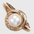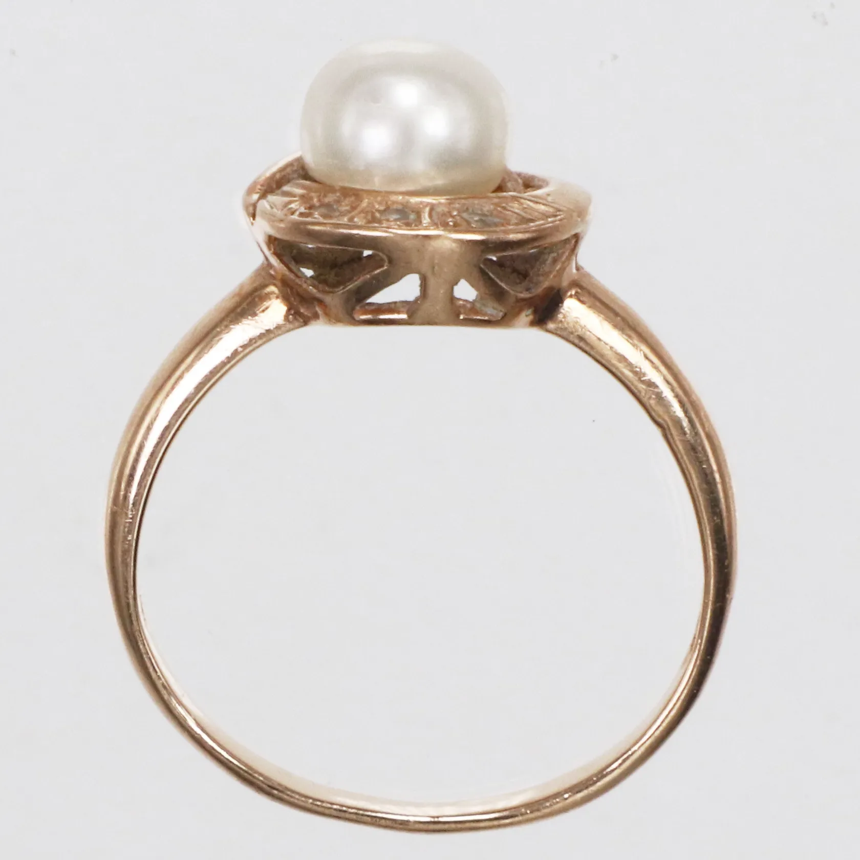 Ring odlad pärla vita stenar, stl 17½, skev, 14K Vikt: 3,3 g.
